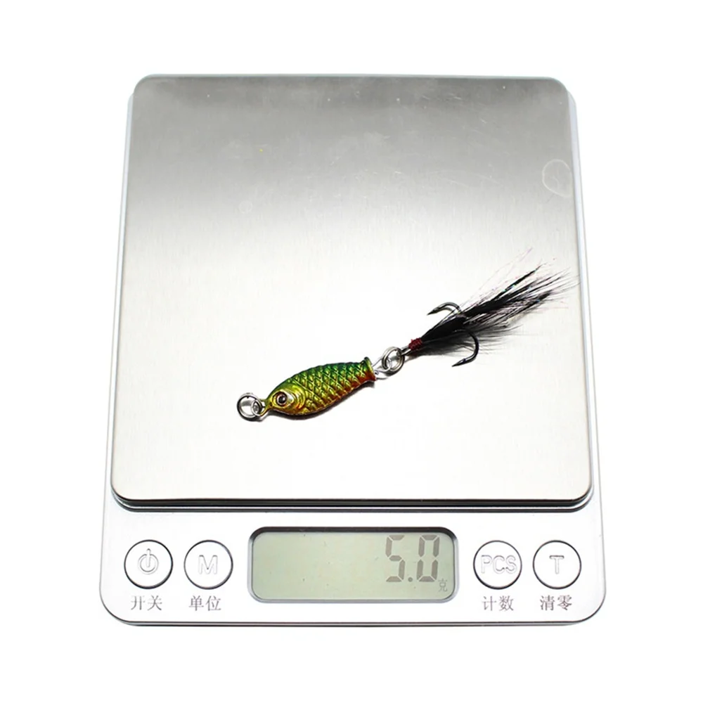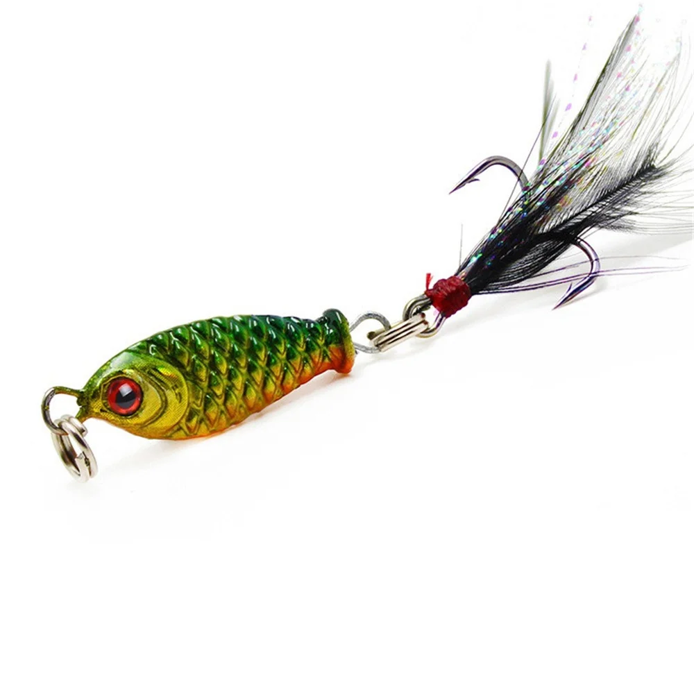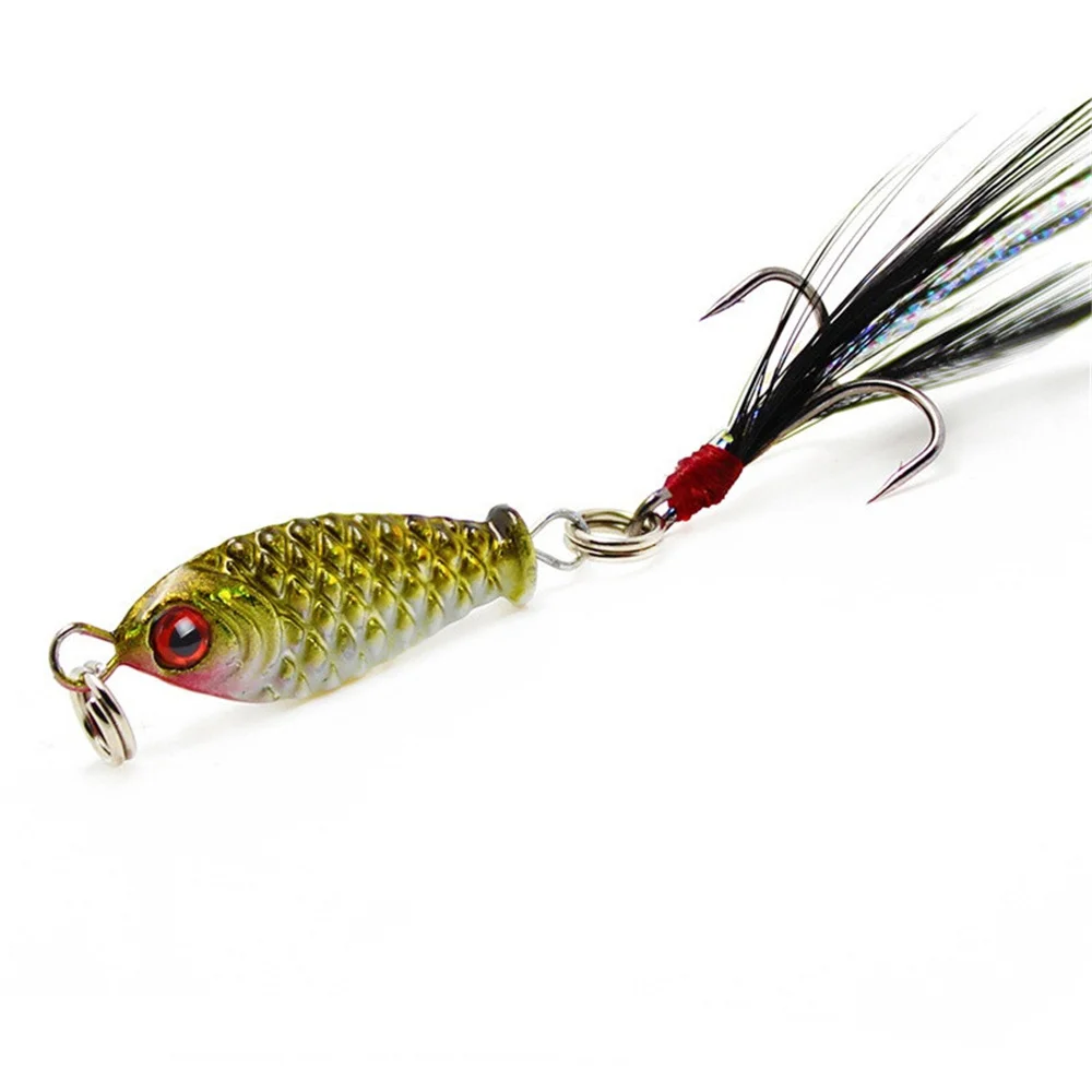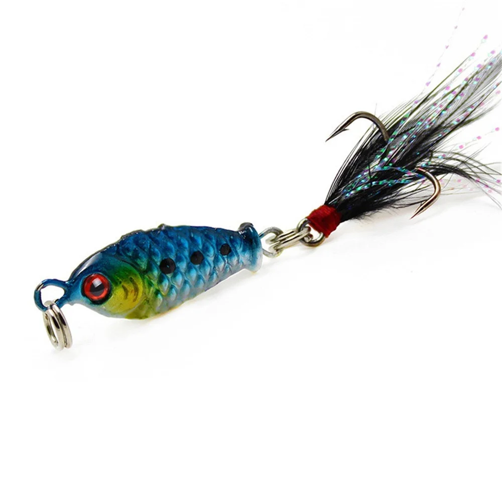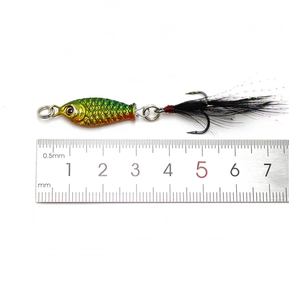 1 Uds 2,5 cm 5g Mini hundiendo cebo duro VIB aparejos de Pesca Wobbler señuelo de Metal para Pesca con gancho de plumas triples bajo la carpa Pesca