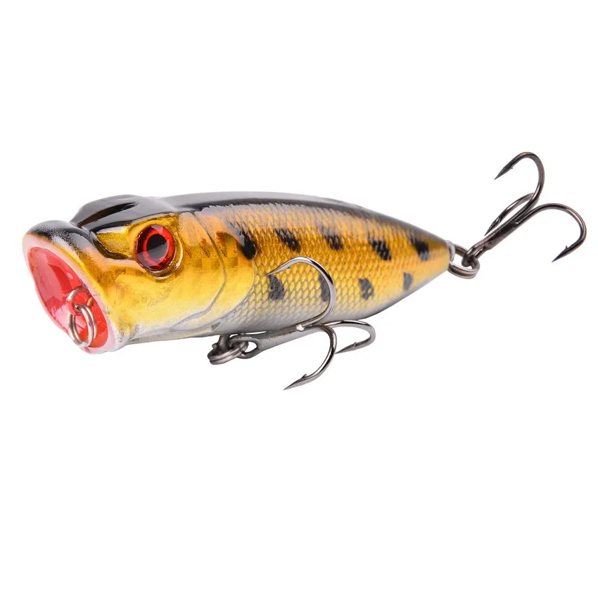 3D eyes make it perfect tool for fishing lovers.Colorful body can make it easy to catch fish.Lifelike and rapid action in water.Excellent visual effect of luring fish.Style: Popper