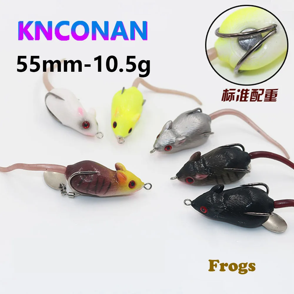 1 unidad de cebo falso para ratón, 5,5 cm/10,5g, ojos 3D, doble gancho de agua dulce, púa, trueno, rana, trueno, cebo para ratón