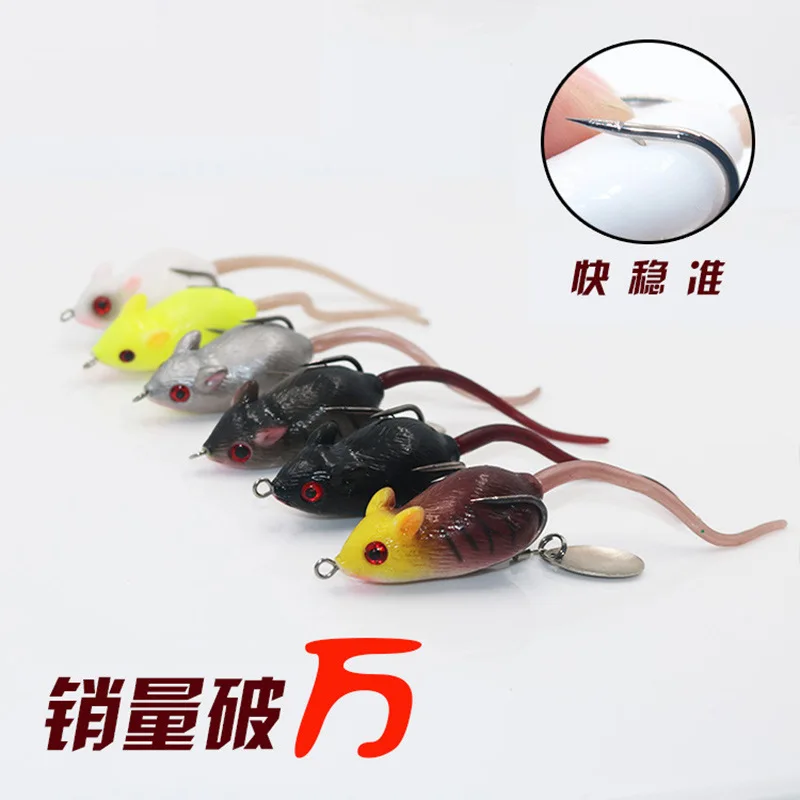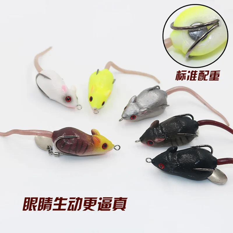 1 unidad de cebo falso para ratón, 5,5 cm/10,5g, ojos 3D, doble gancho de a...