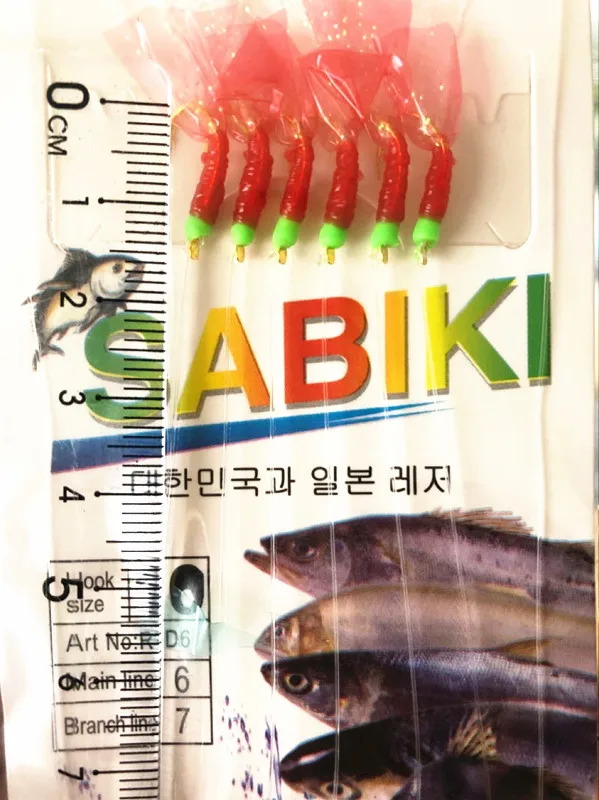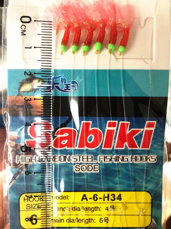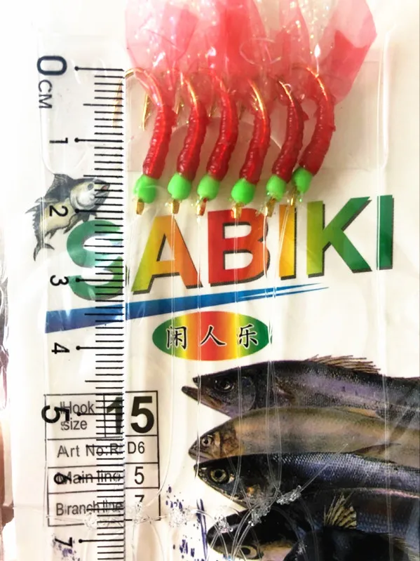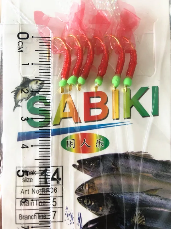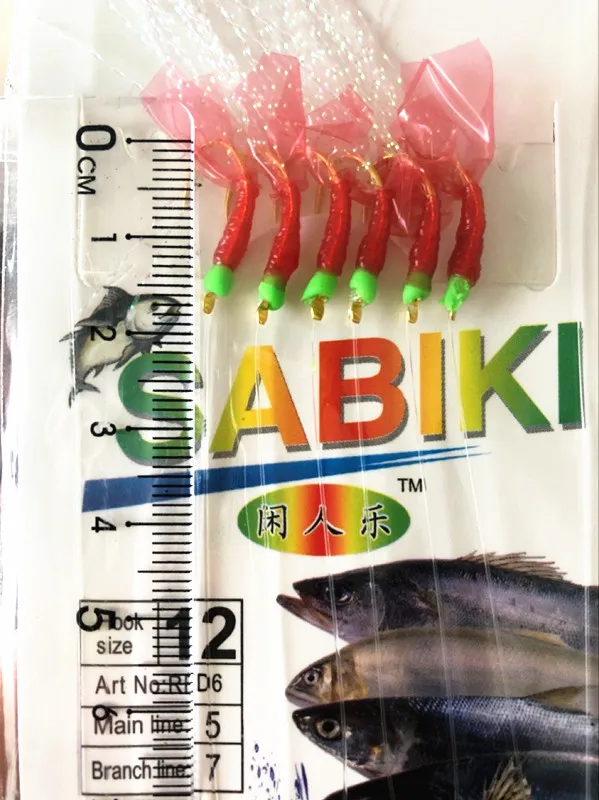 10 paquetes de aparejos Sabiki de goma roja, anzuelos para cebo de pesca, anzuelo atado dorado, señuelos de agua de mar