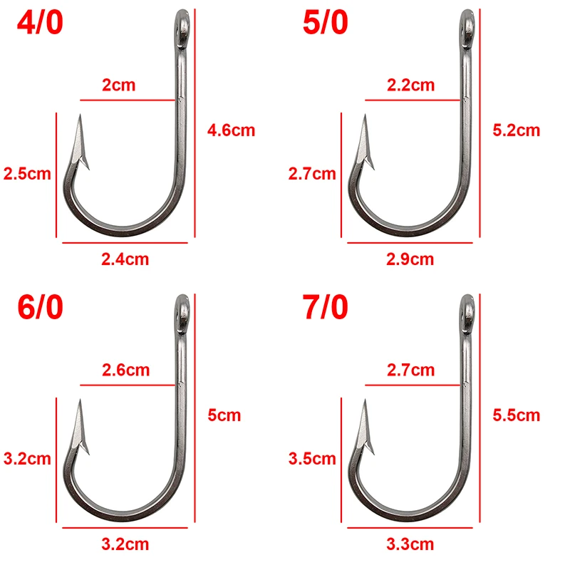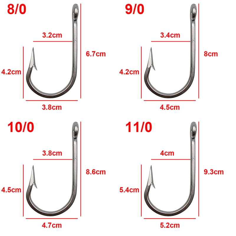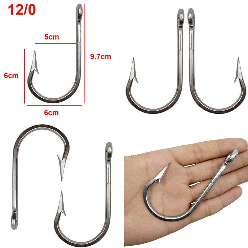 10 Uds. Anzuelos de pesca de acero inoxidable 7732, anzuelo de pesca con cebo de atún grueso grande, tamaño 5/0 6/0 7/0 8/0 9/0 10/0 11/0 12/0