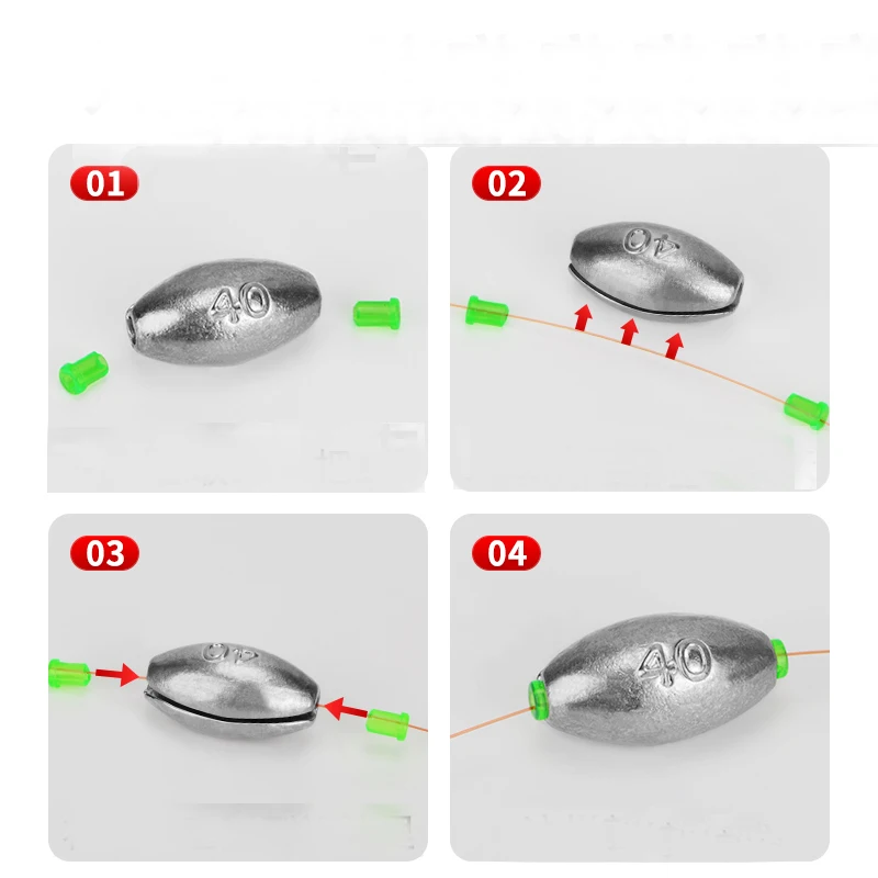 4.Con un tapón de plástico en cada extremo del plomo, puede ayudar a proteger el hilo de pescar contra daños.