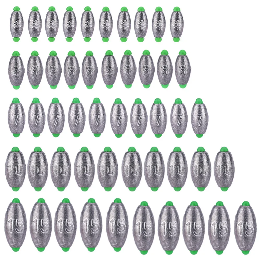 0 unids/lote 3 4 7 8 10 12 15g peso de plomo pesca plomo molde de plomo en forma de oliva paso medio extraíble dividido plomo disparado kits de aparejos