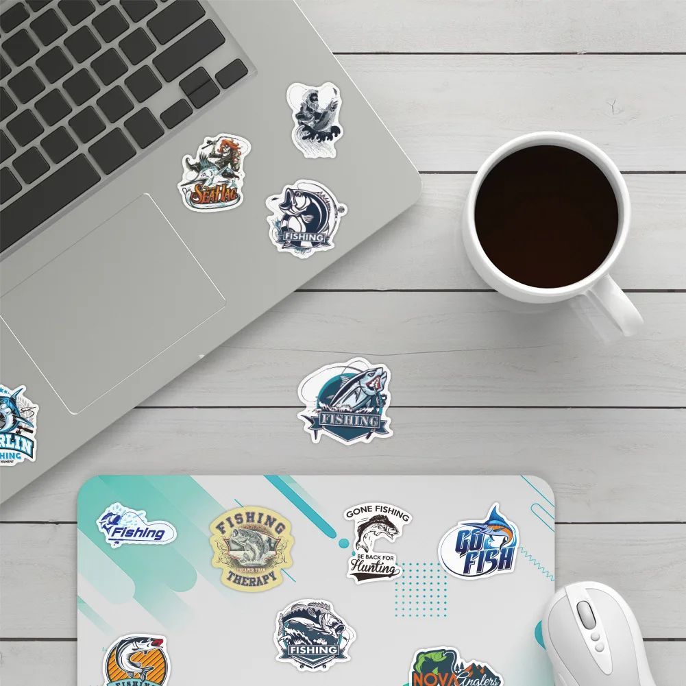 100 Uds. Pegatinas impermeables de pescador Go Fishing para maleta, congelador, calcomanías de decoración DIY, pegatina para coche