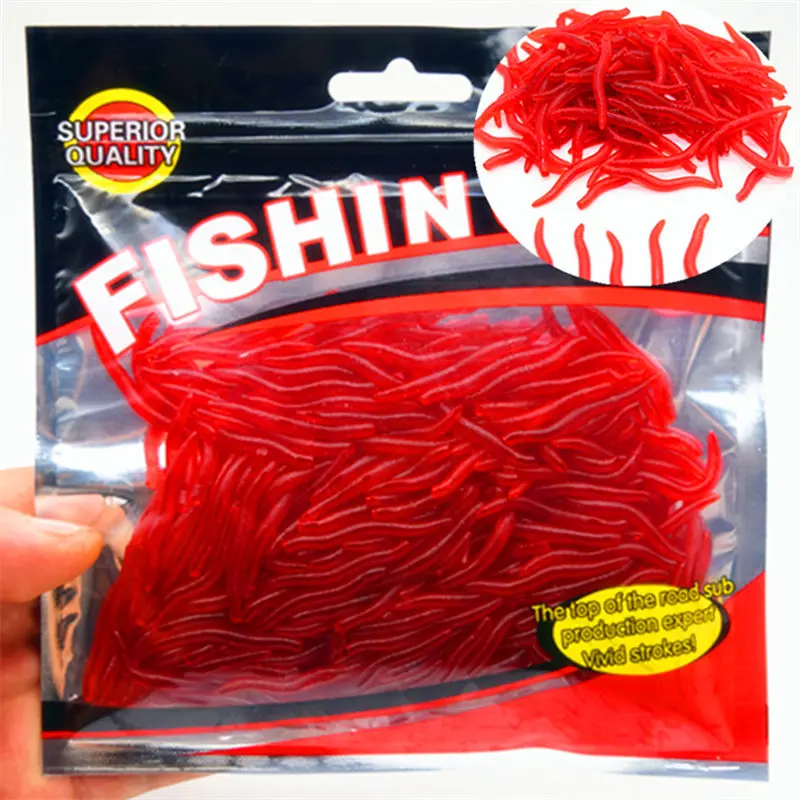 100 unids/set Olor rojo suave Señuelos de gusano realistas 3,5 cm Simulación Lombrico de tierra Olor de pescado rojo Señuelo suave Gusanos Señuelo de pesca de carpa