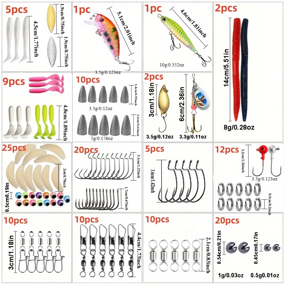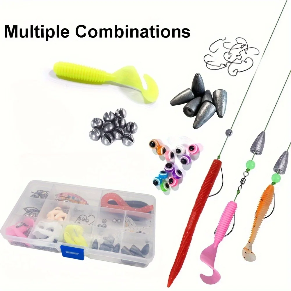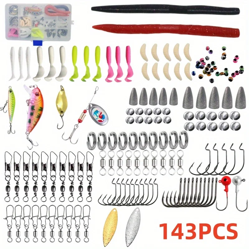 143 unids/caja Luya set, cebo de agua dulce de mar cebo suave cebo duro Luya conjunto de accesorios de gancho de lentejuelas