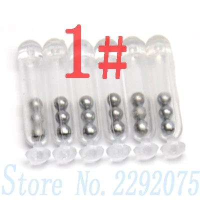 1#: 2,6 cm de largo, 0,5 cm de diámetro, 3 cuentas en el interior.