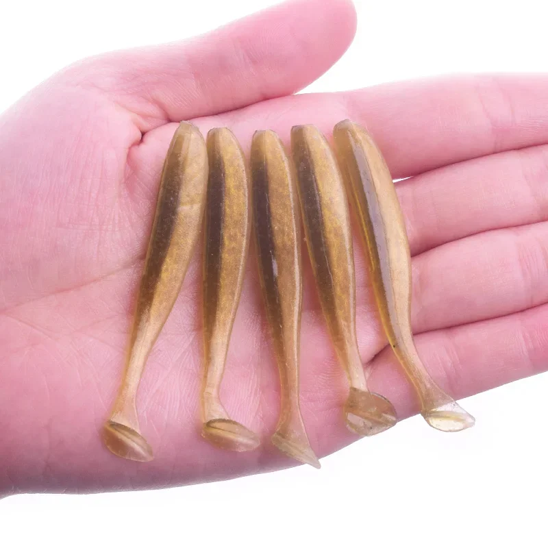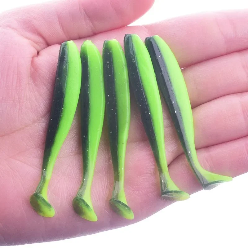 20 unids/lote jig Wobblers señuelo de pesca 63mm 1.5g Pesca Artificial cola en T natación cebo suave de goma carpa bajo camarón olor señuelos