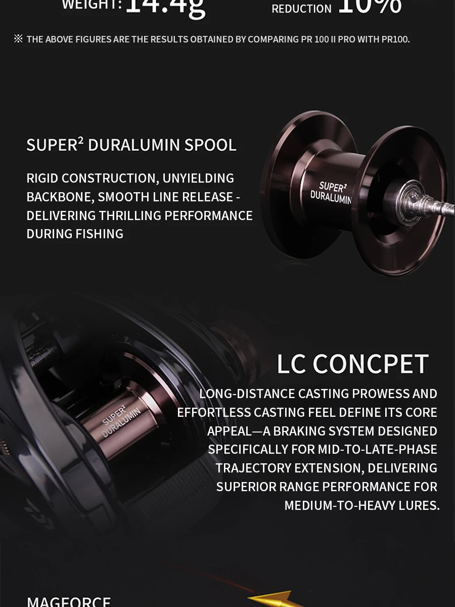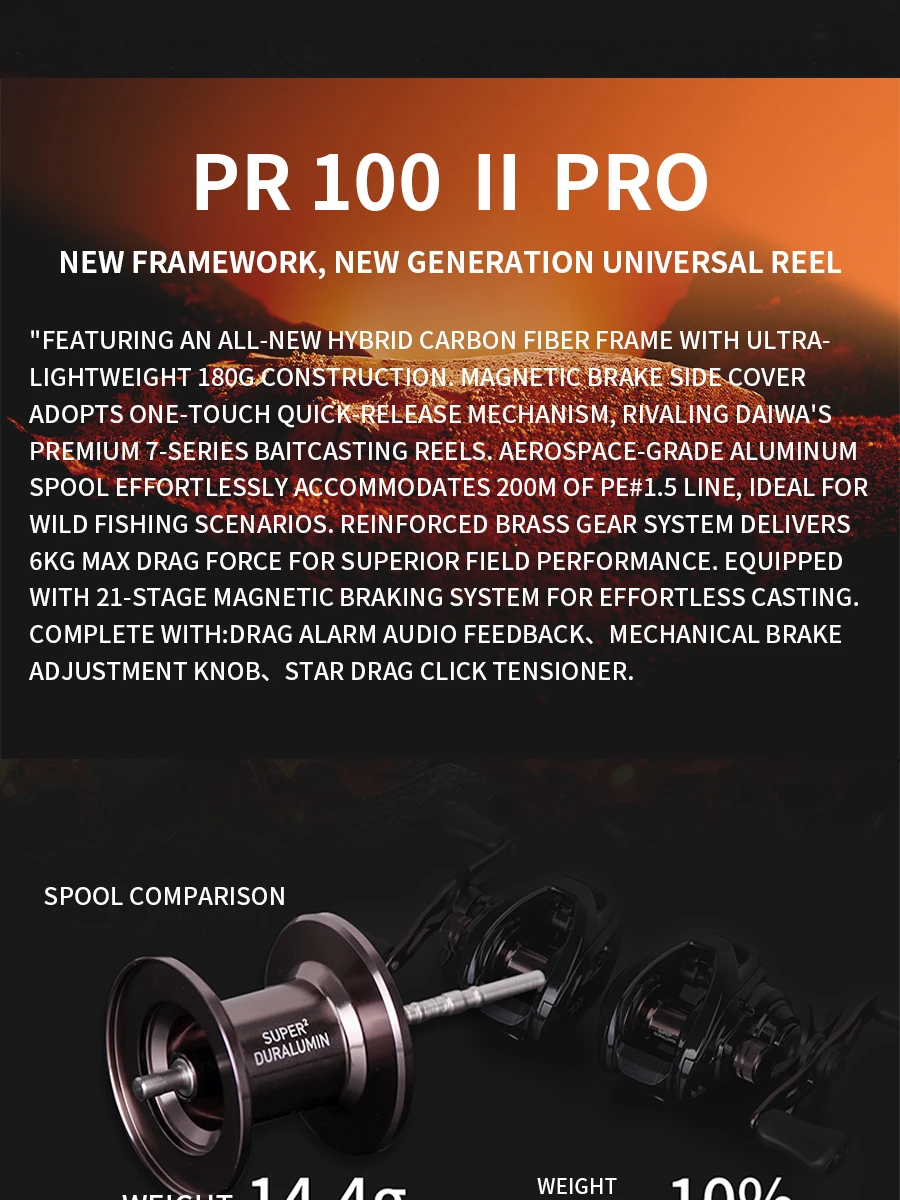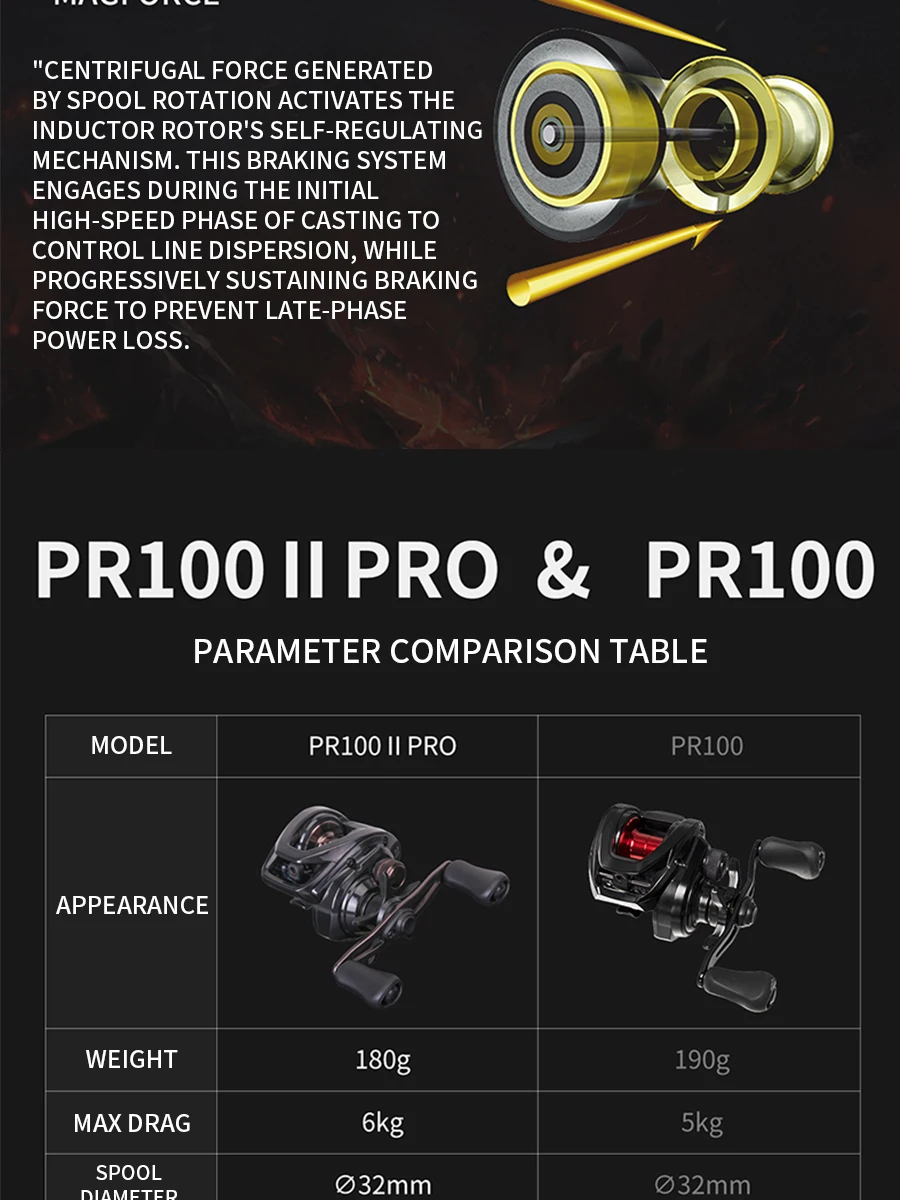2025 DAIWA PR100 II PRO carrete de pesca Baitcasting 3 + 1BB 7,3: 1 relación 190g cuerpo ligero sistema de frenos MAGFORCE carrete de agua de mar