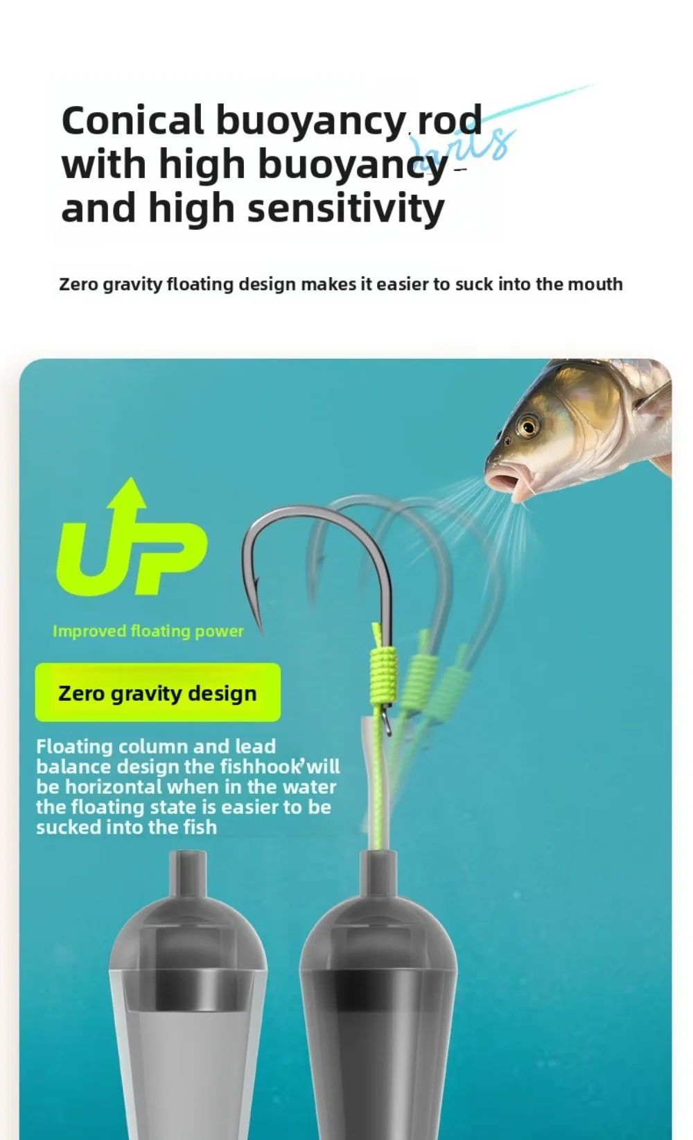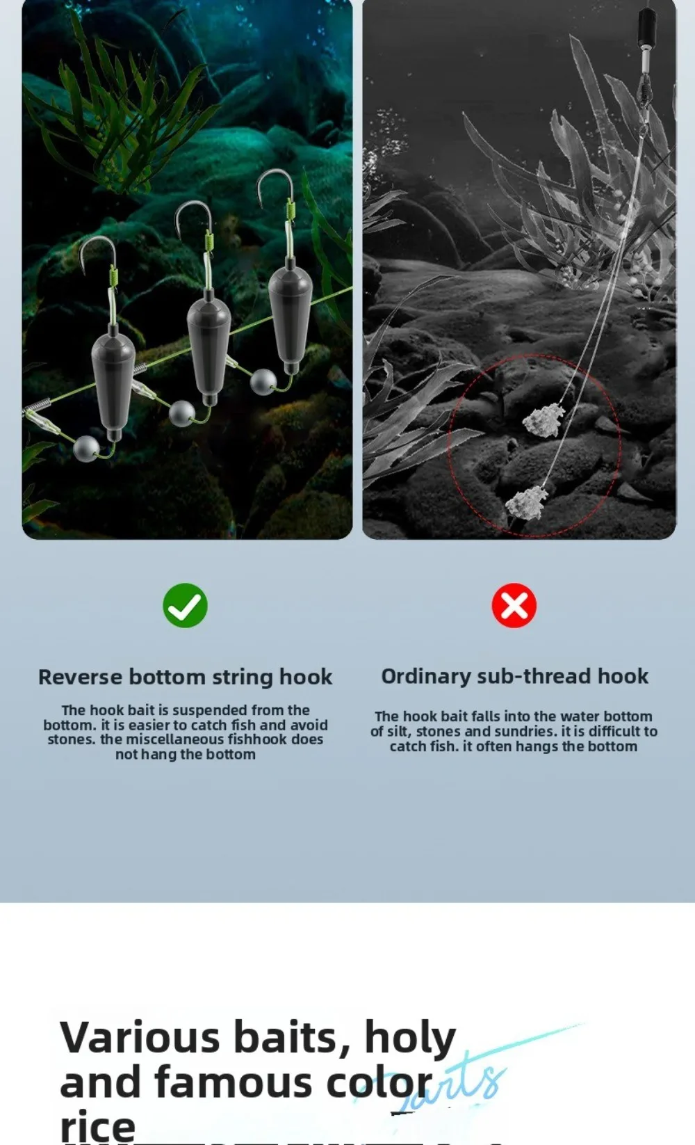 -Los anzuelos pueden flotar boca abajo bajo el agua, atrayendo más eficazmente a los peces para agarrar alimentos y aumentando la capacidad de captura de peces en más de tres veces.