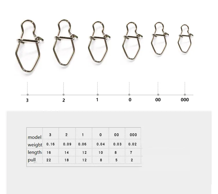30-50 unids/bolsa conector a presión rombo 000 # -3 # Nuevo Pasadores de seguridad con gancho giratorio para pesca, accesorios, aparejos