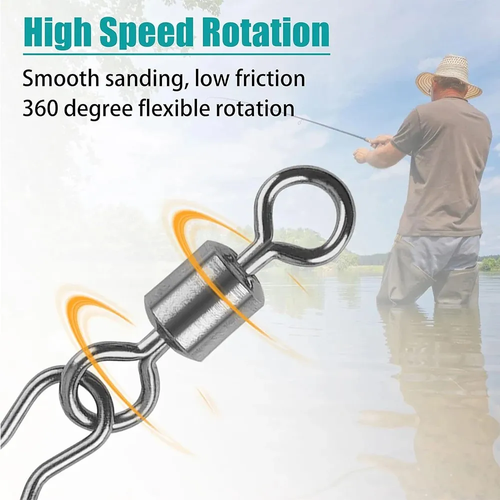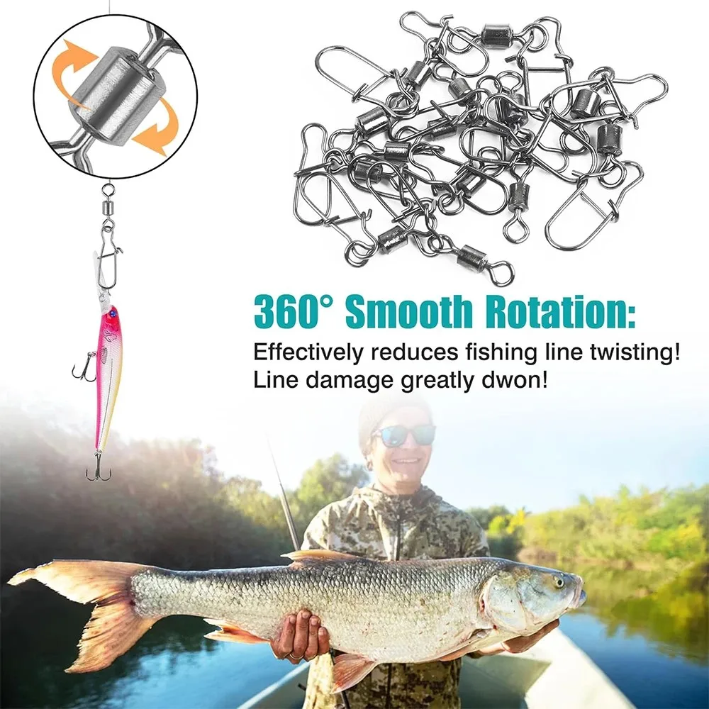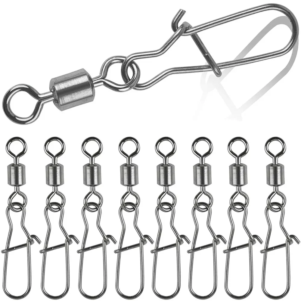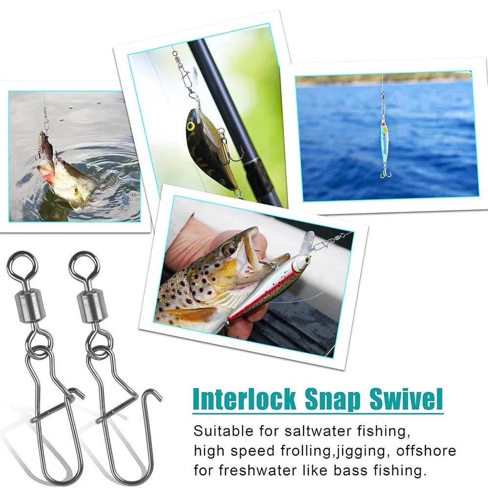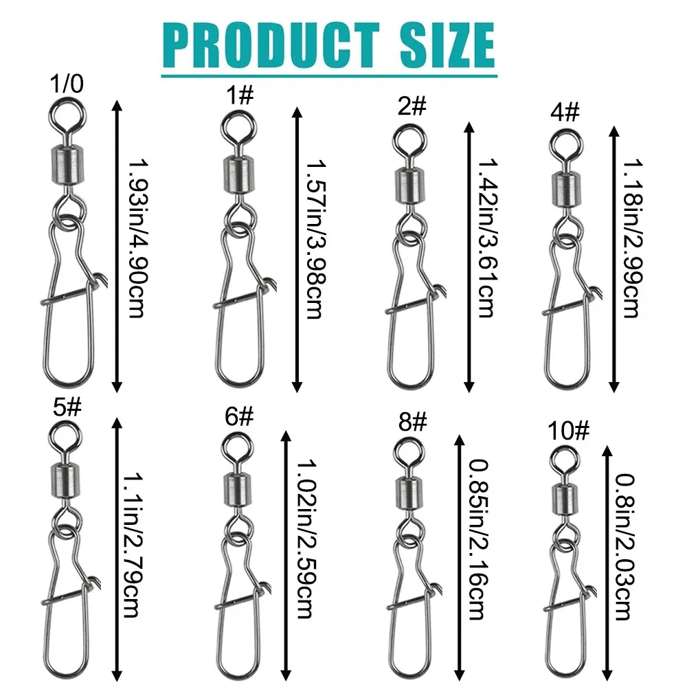 QUICKLY CHANGE: 2-in-1 quick lock-open fishing snap swivel, allowing you to replace leaders, lures or lines in seconds. Save time from fitting different gears together.