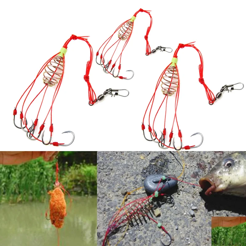 Anzuelo de pesca de acero inoxidable con resortes de acero inoxidable, cebo, trampa, alimentador, jaula, cebo, señuelo de pesca
