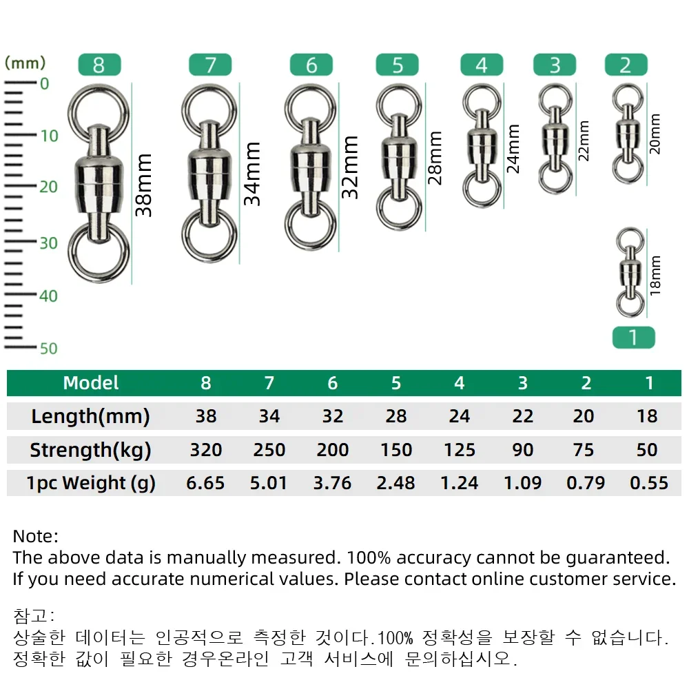 DNDYUJU 5 uds rodamiento de bolas de pesca giratorio de acero inoxidable aparejos de pesca de agua de mar conector de pesca en tierra accesorios de señuelos de pesca