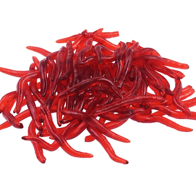 50 o 100 Uds olor a camarón silicona gusano de tierra rojo señuelo suave 3,5cm goma gusano rojo cebo Artificial para carpa lubina aparejos de Pesca