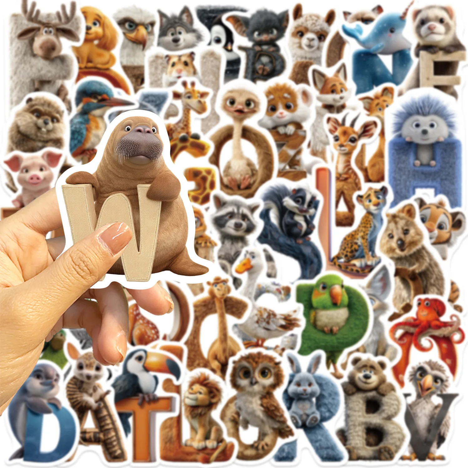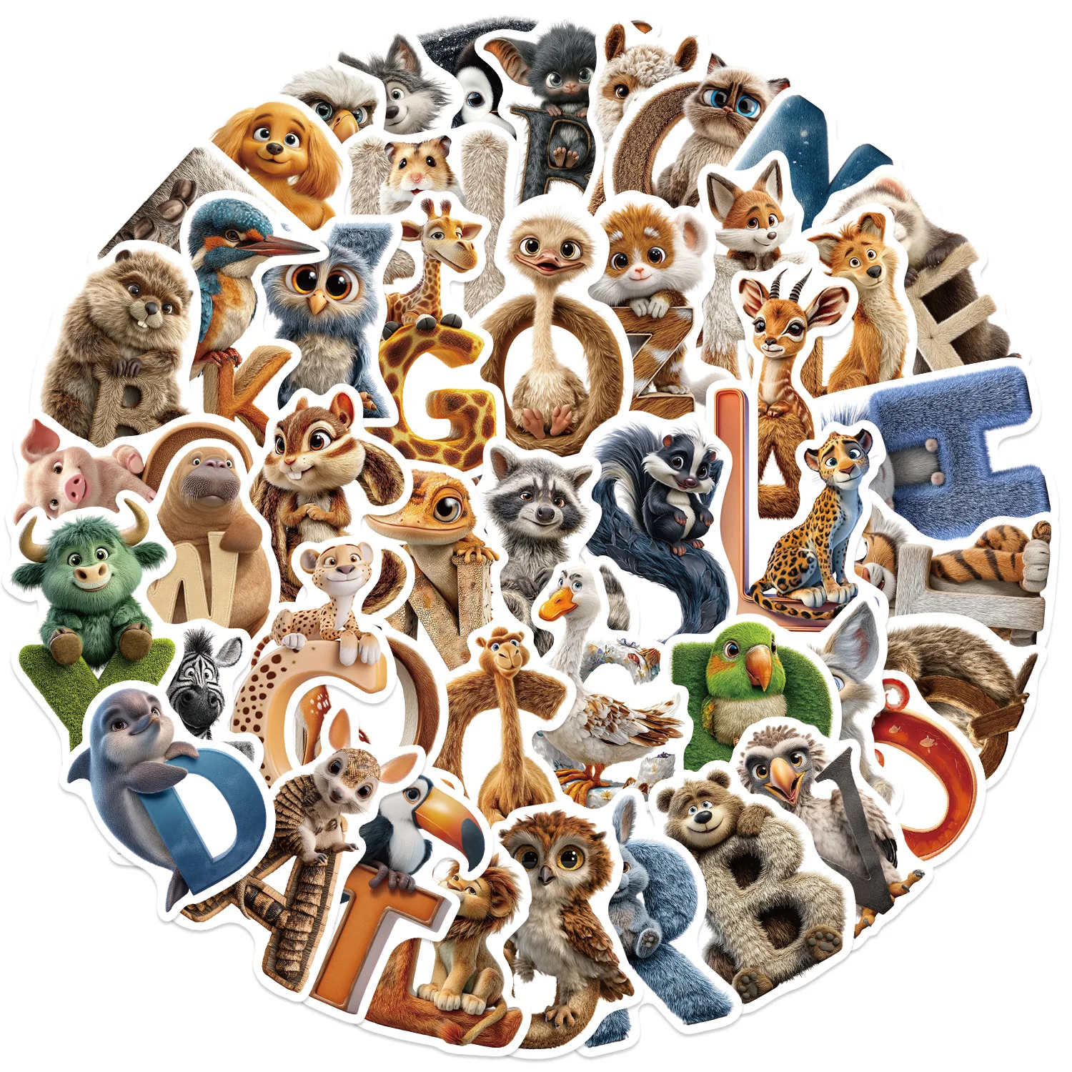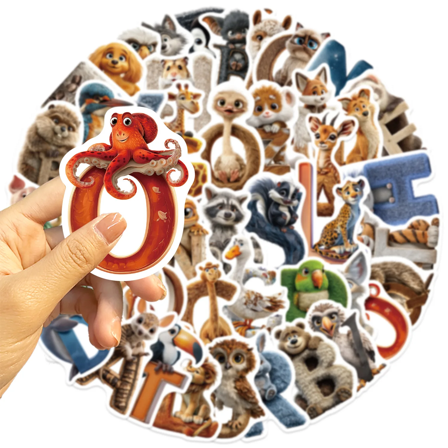 50 Uds. De pegatinas de grafiti de dibujos animados con letras de animales, pegatinas impermeables para teléfono, guitarra, portátil, maleta, botella de agua