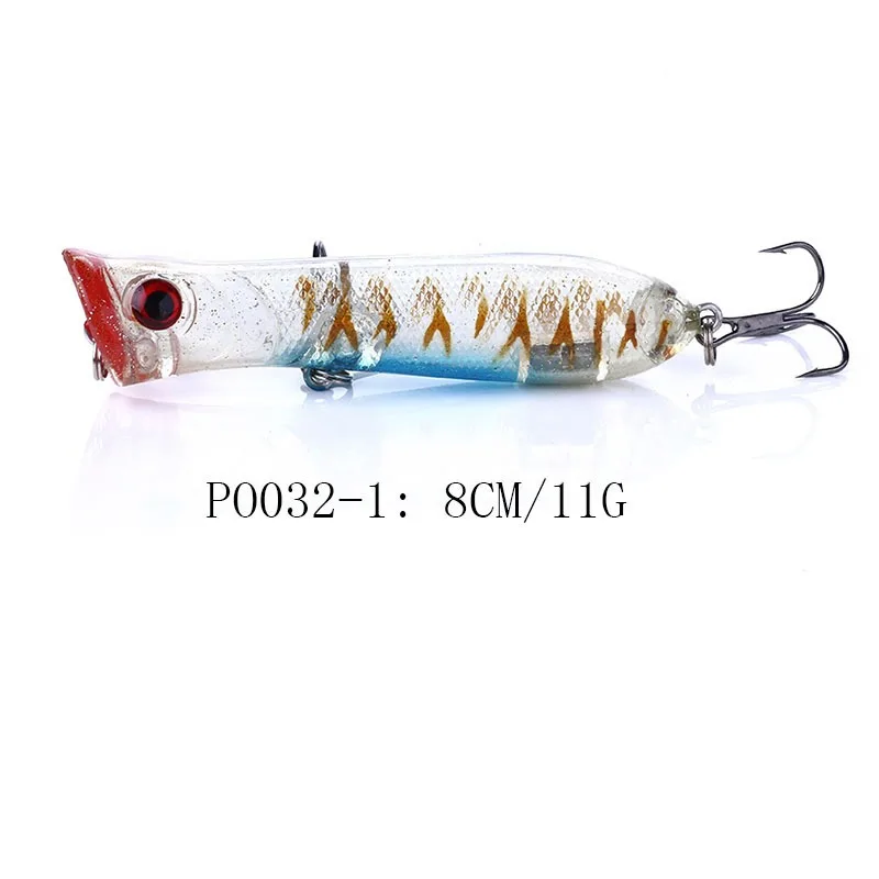 80 mm 12 g 6 # Anzuelo Popper cebo duro Wobbler señuelo de pesca remolque flotante Artificial pesca en el océano carpa biónica aparejos pesca en el mar