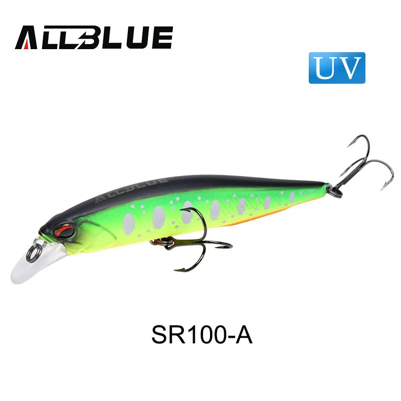 ALLBLUE nuevo JERKBAIT 100SR señuelo de pesca profesional 100mm 14,1g flotante Wobbler Minnow 0,8-1,2 m lubina cebo MUSTAD anzuelos