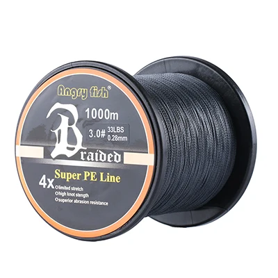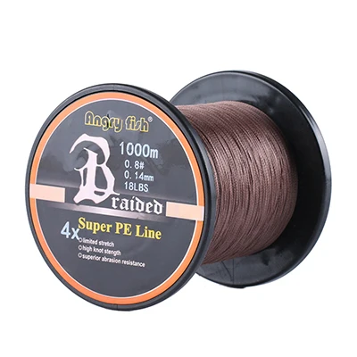 Angryfish-línea de pesca trenzada, 1000m, 4x, 8 colores, Super PE, fuerte resistencia