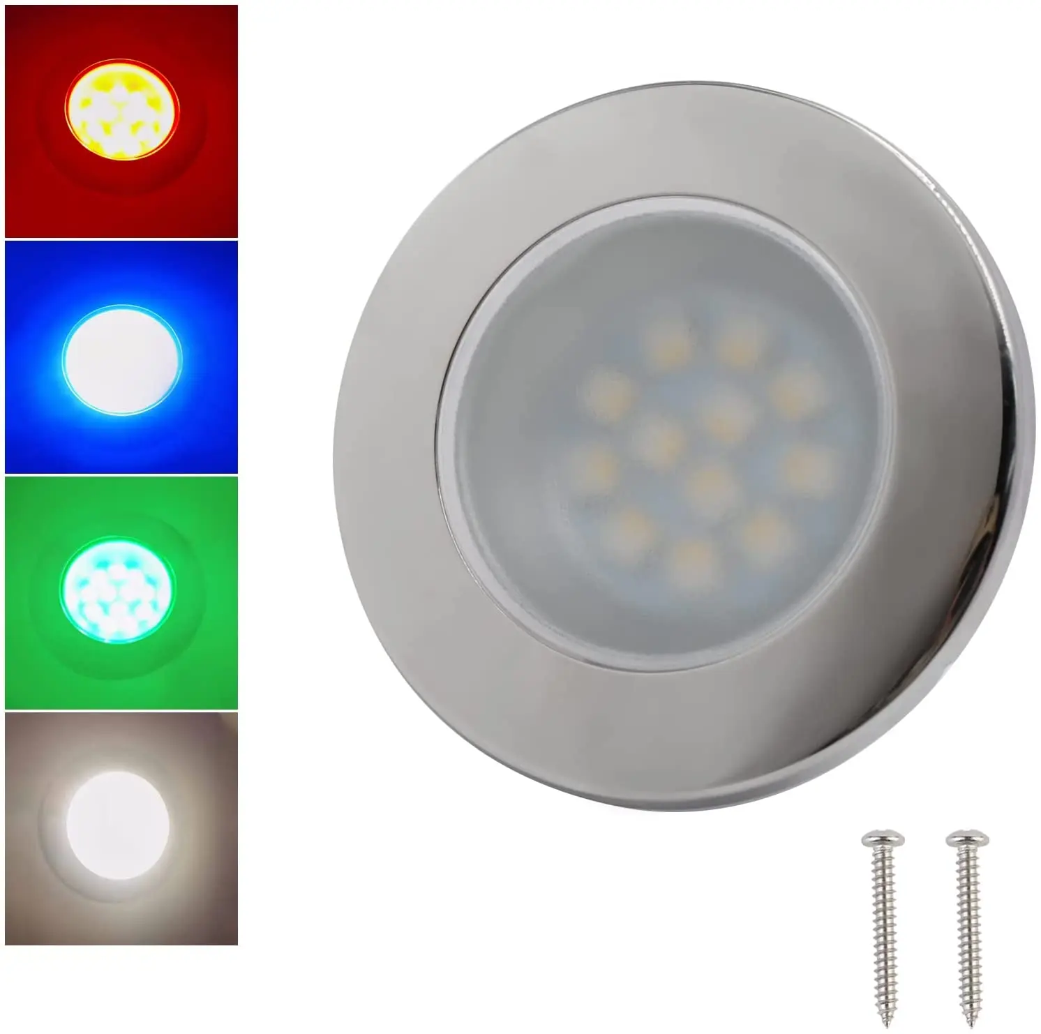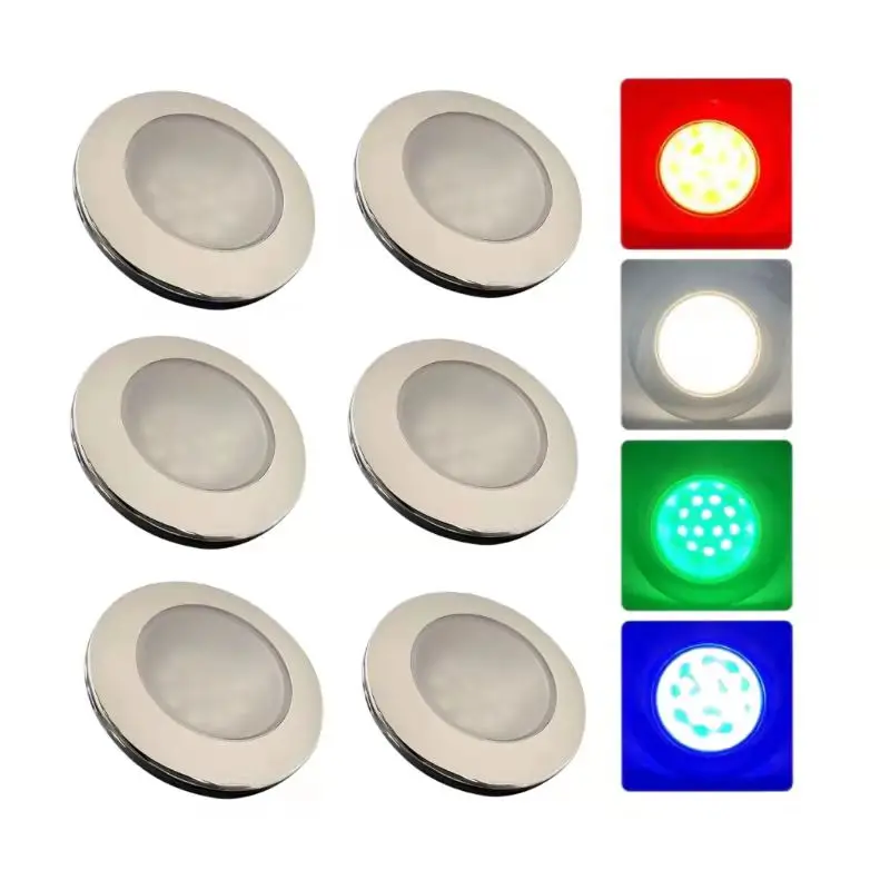 Luces de cortesía para barcos Lámpara LED para cabina Marina RGBW con montaje empotrado de acero inoxidable 12 voltios 3 pulgadas IP67