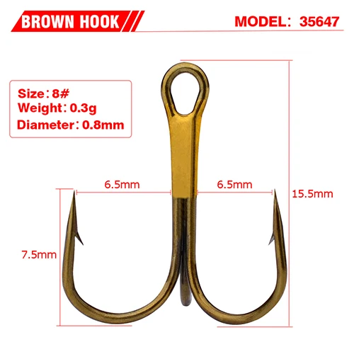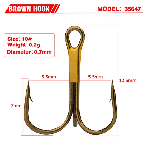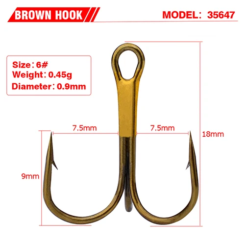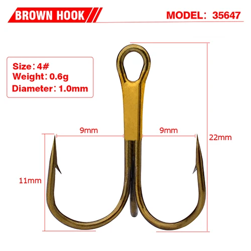 Anzuelo de pesca PRO BEROS de 100 piezas, anzuelo de pesca de Color marrón, aparejos de pesca antioxidantes, anzuelo triple de acero de alto carbono 2 #-10 #