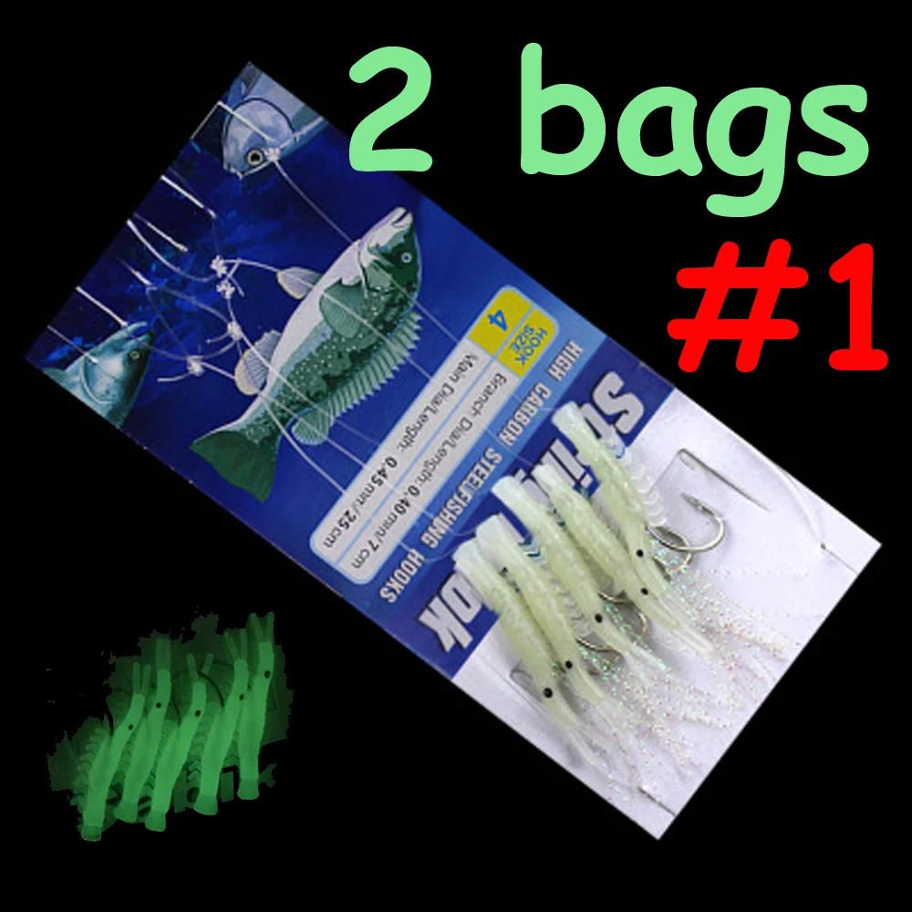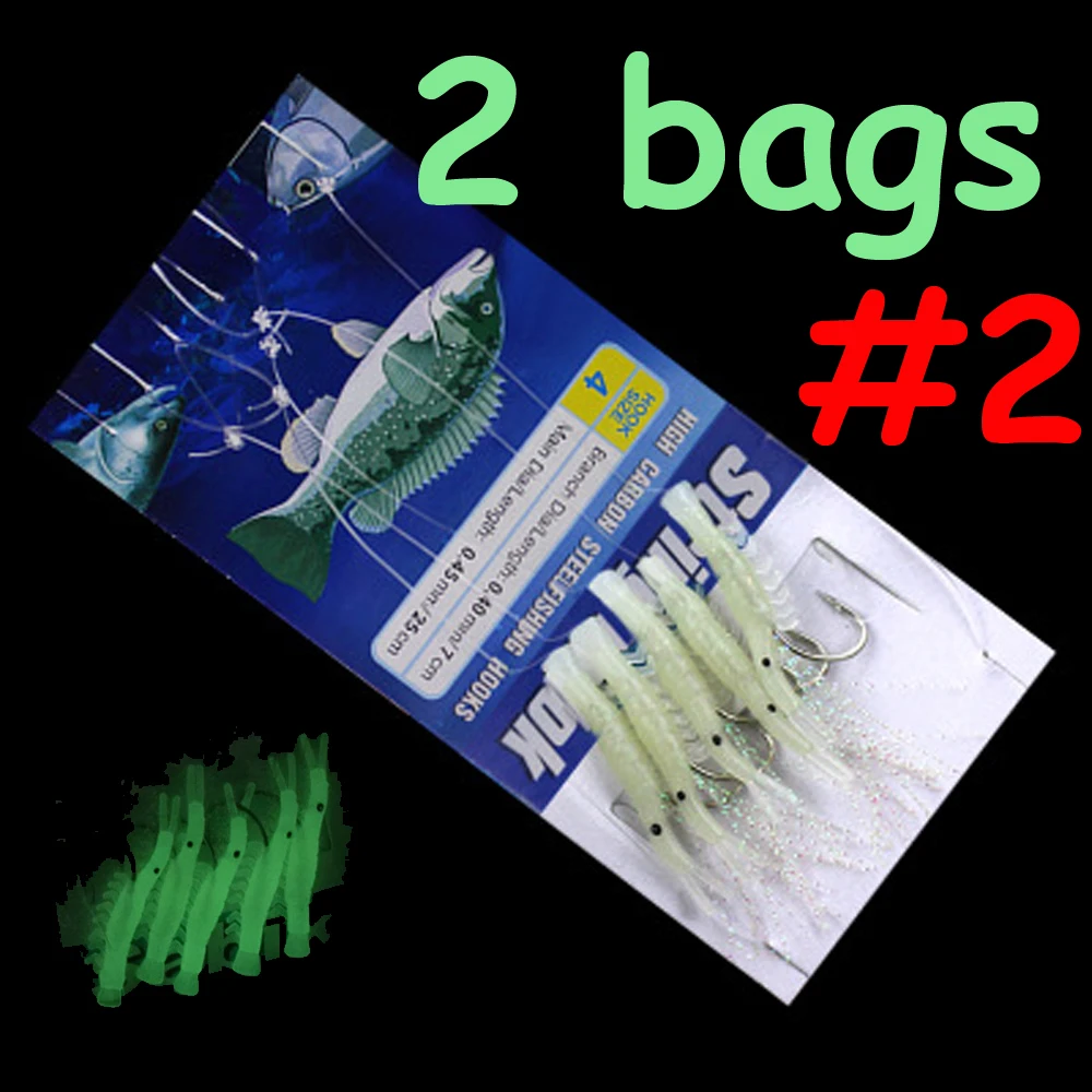Señuelo luminoso Sabiki para pesca en agua salada, aparejos con cola intermitente, señuelo suave, anzuelos de pesca, cebos brillantes para camarones, 10 Uds.