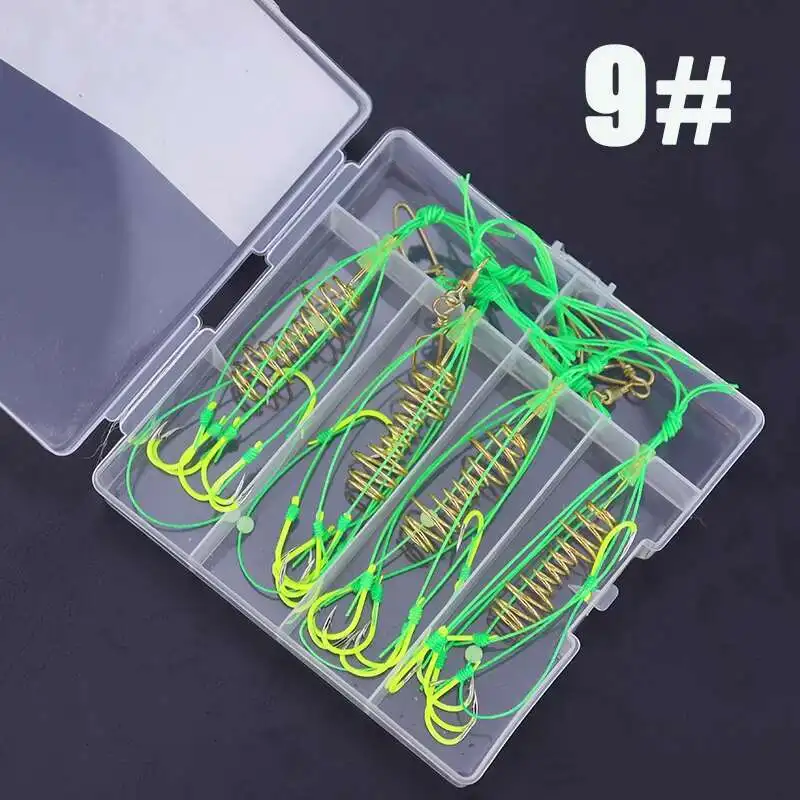 4 unids/lote anzuelos de pesca de acero de alto carbono púas punta de anzuelo afilada resorte fuerte línea de pesca de nailon de alta calidad anzuelos luminosos