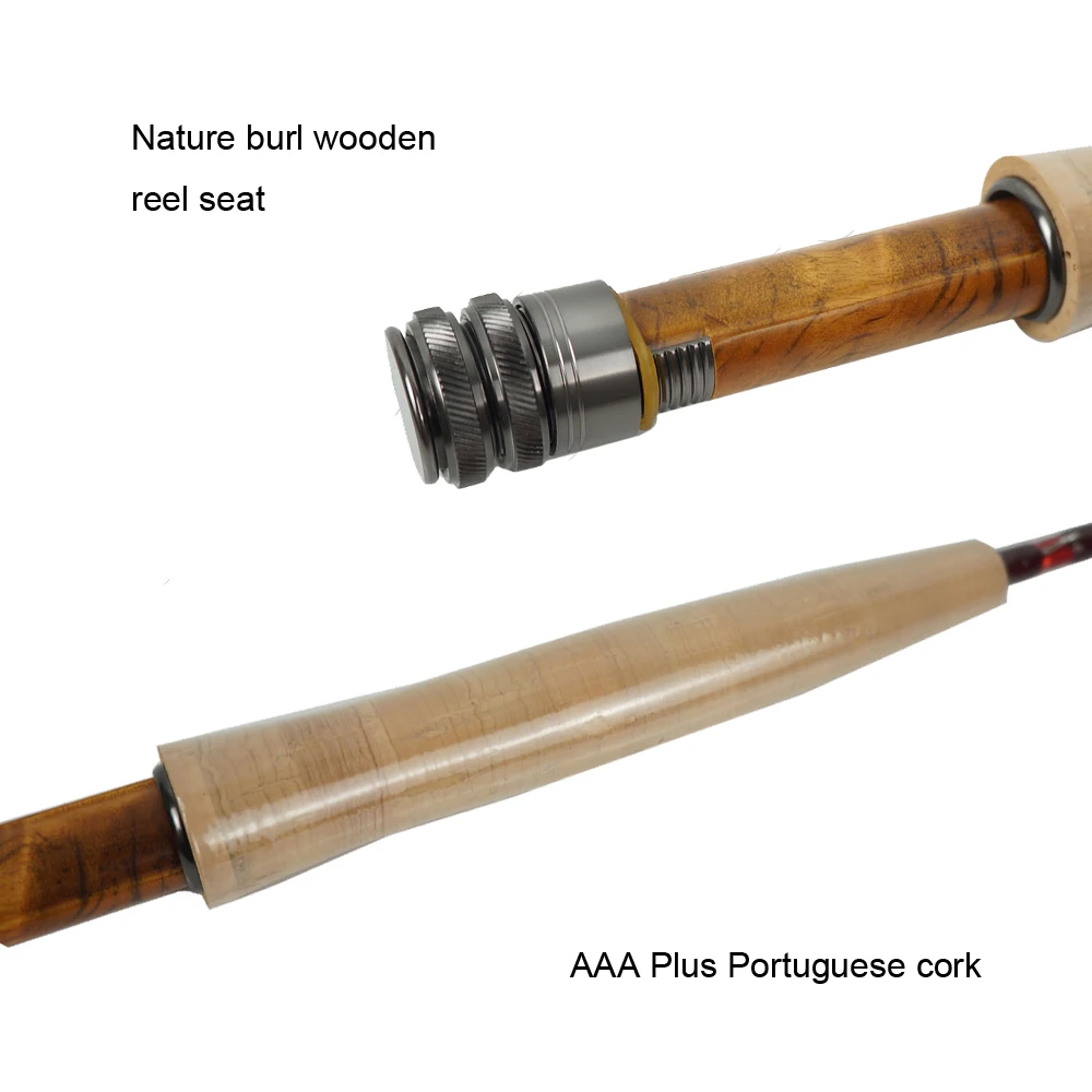 COMPONENTES PREMIUM: guía de un solo pie cromado súper duro de Pacific Bay con punta extra grande. Guías avanzadas de pelado de anillos cerámicos para resistencia a la corrosión y rendimiento suave. Asiento de carrete cortado mecanizado CNC de último diseño con insertos de madera Burl para 7 '6 ", 8' 0", 8 '6 ". Mango de corcho súper bien. Acabado rojo metálico con líneas de alineación para un montaje rápido. Todo viene con tubos Cordura de alta calidad.