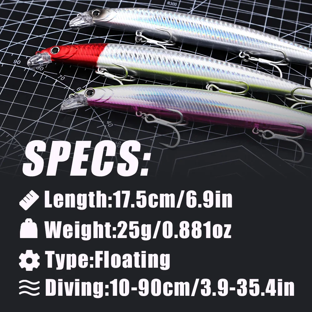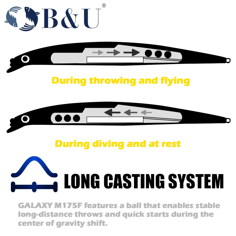 B & U-señuelo de pesca flotante, pececillo delgado de fundición Ultra larga, 175mm, 26g, 10-90cm, cebos duros grandes artificiales de agua salada