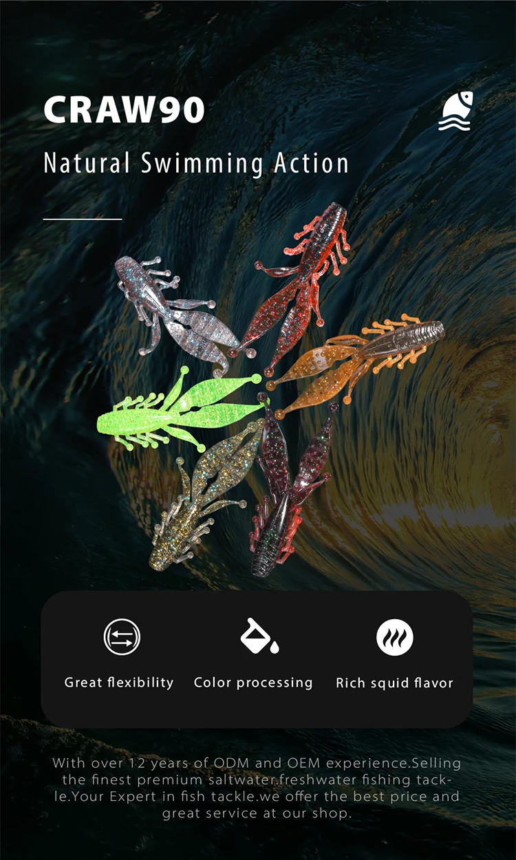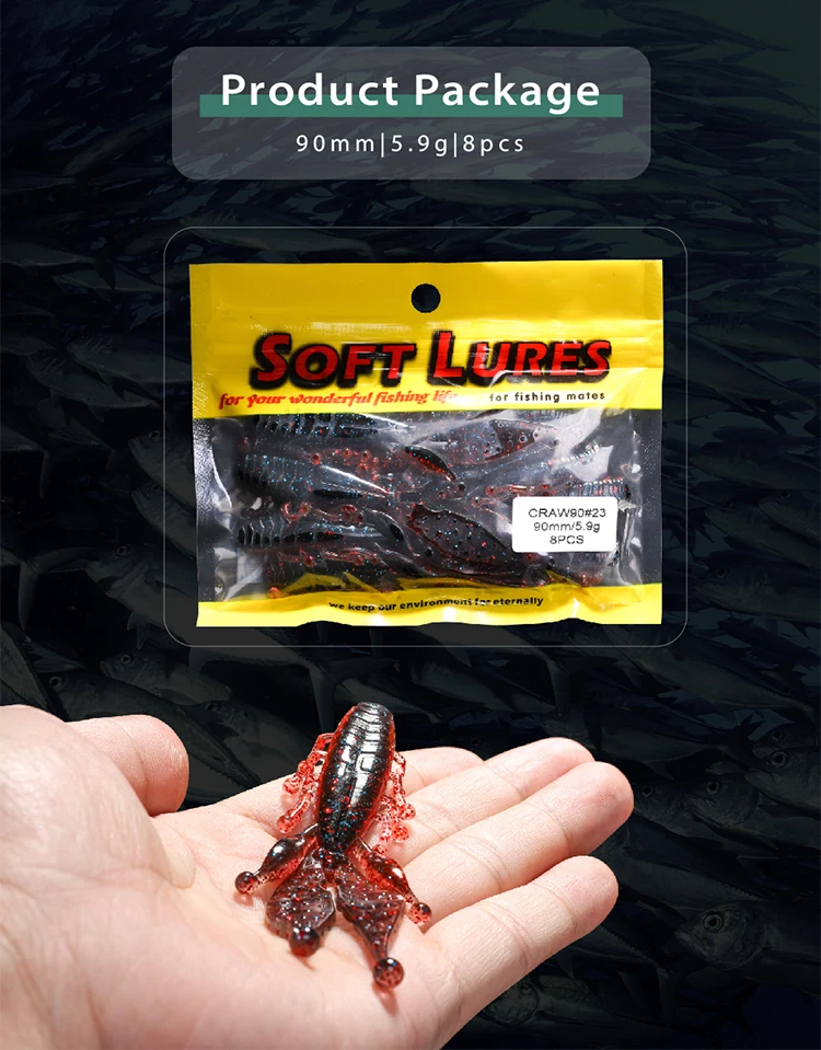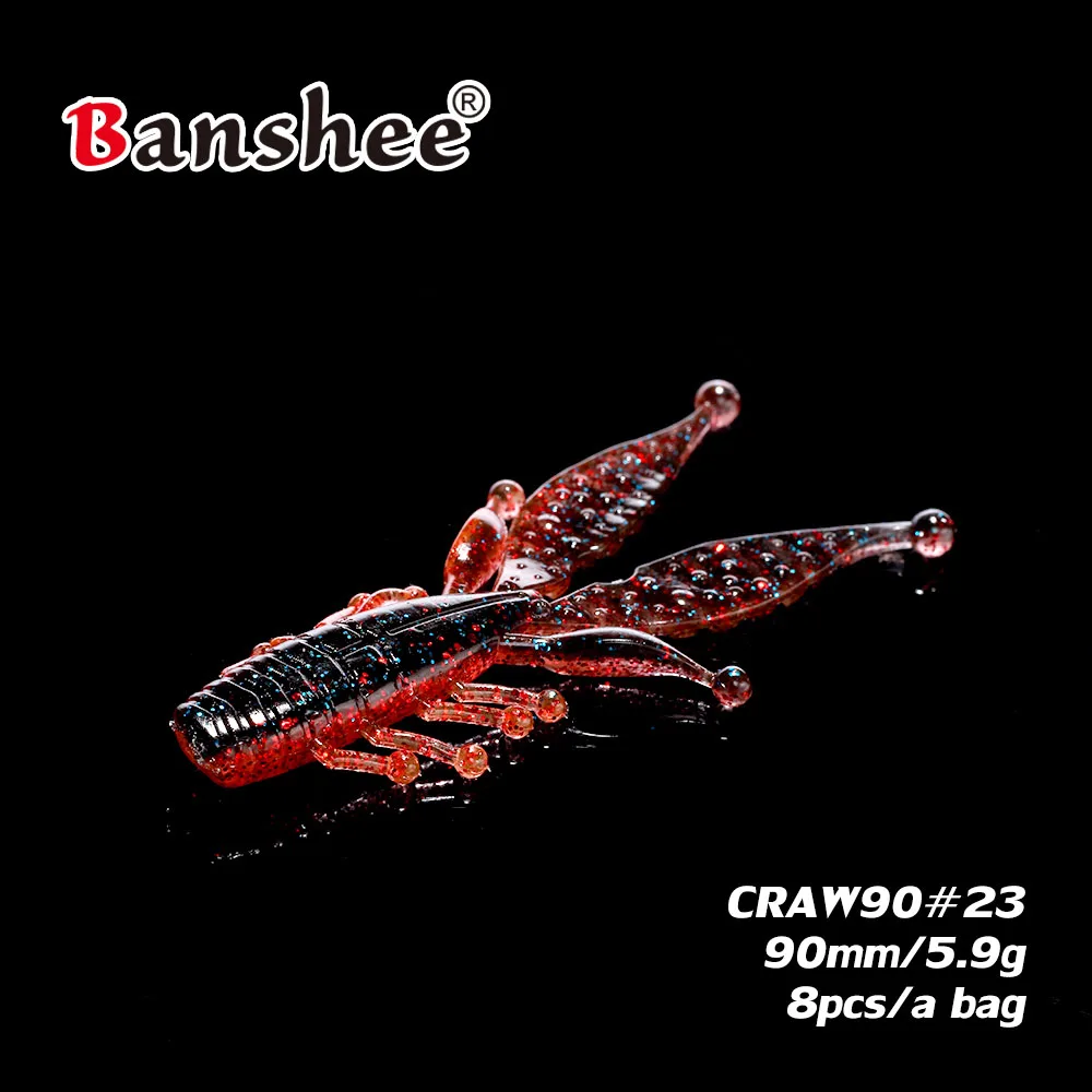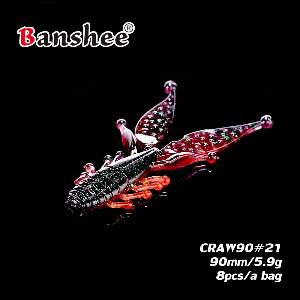Banshee perfecto cebos blandos para pesca señuelos 90Mm y 5,9G gusano Texas Rig Craw señuelo para pesca de Bass Pike fácil ojo morado de cebo conjunto