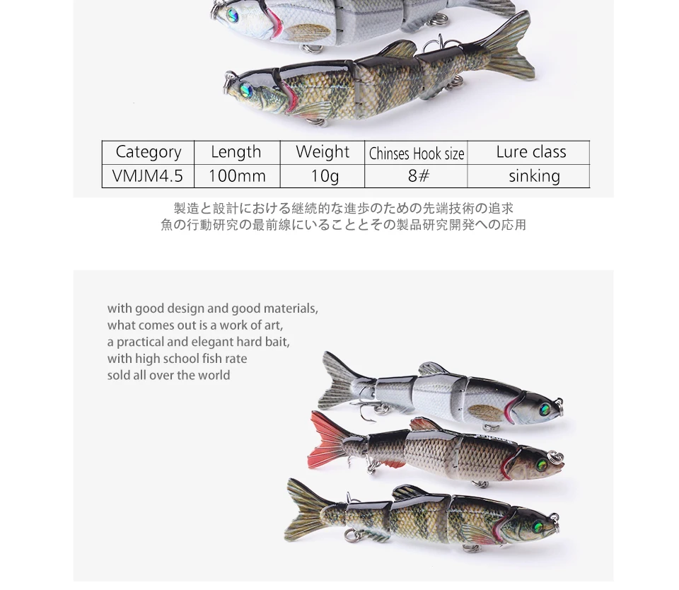 Aún no se ha probado, pero el señuelo parece de muy buena calidad. Las articulaciones son buenas y el gancho es pungant.