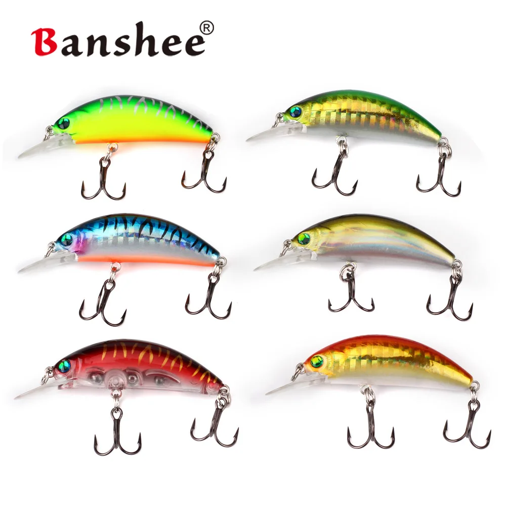 Banshee-Wobbler flotante para Pesca, Señuelos de Pesca de buceo poco profundo, Crankbaits, pececillo negro, Jerkbait duro para Lucio, 4,5 cm, 4,7g, 6 uds.