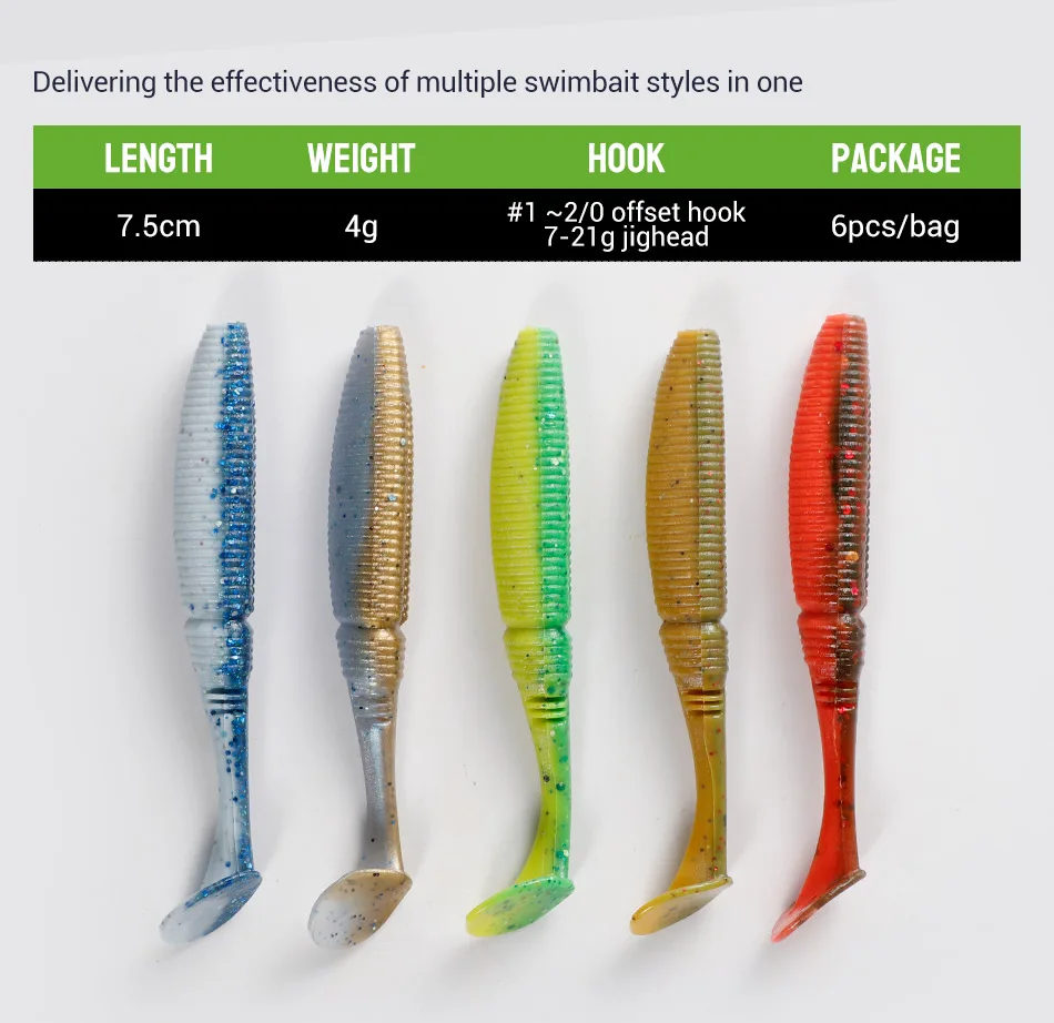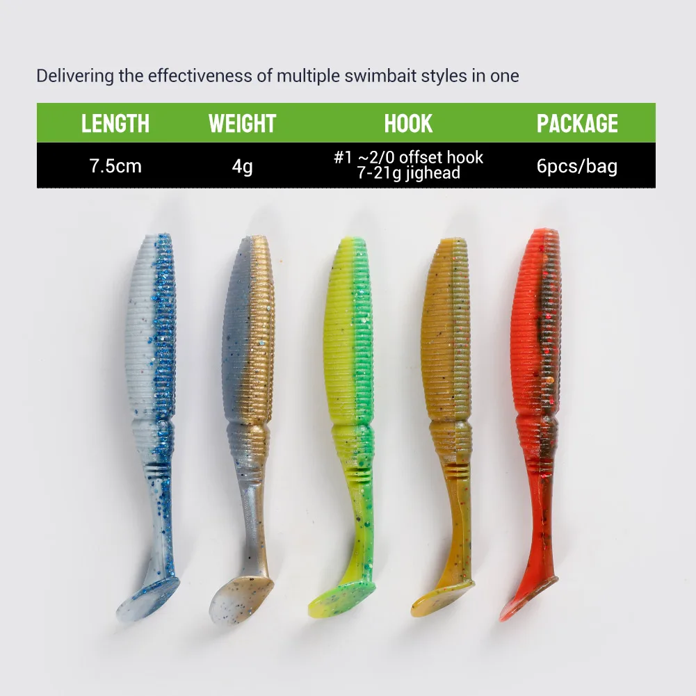 Bassland Soft Lure 75mm 4G Paddle Tail Drive Shad Wobblers artificiales de doble color Bass Pike Leurre Souple