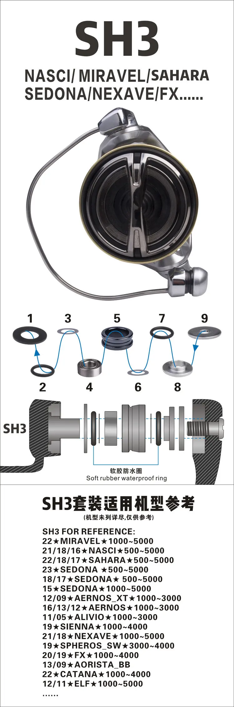 2. model 3, SH3W(NSK) and SH3W(CNB), they can fit the same models for SH reel, just like shown on the photo of SH3.