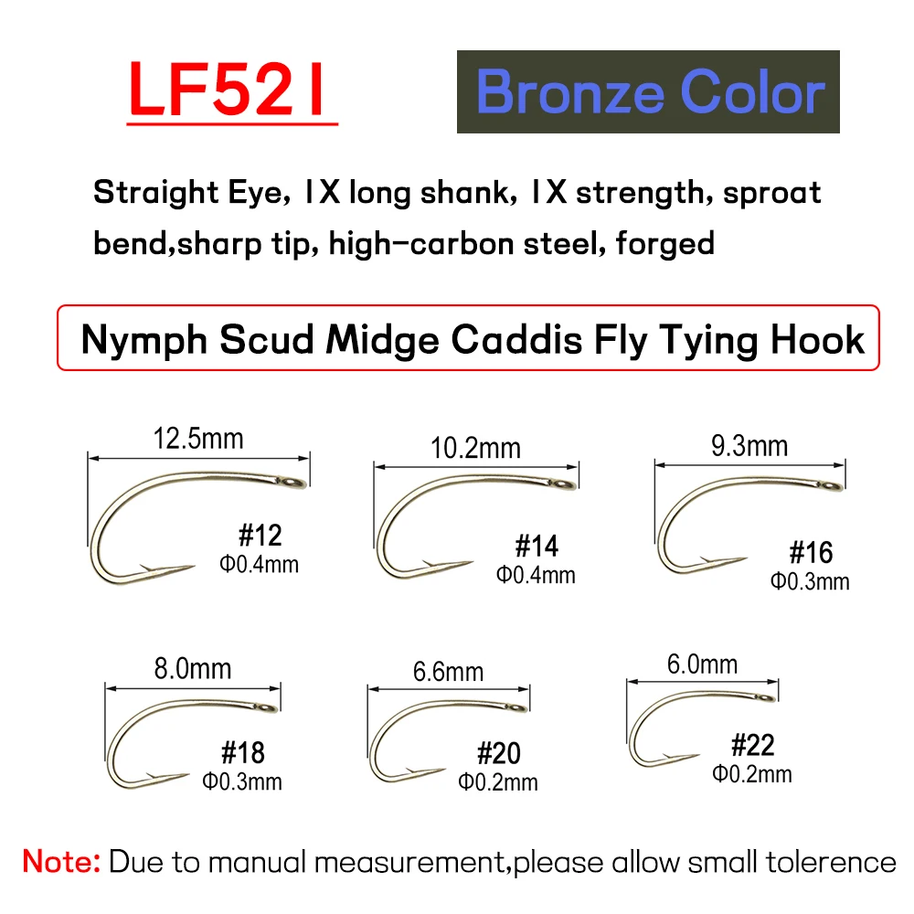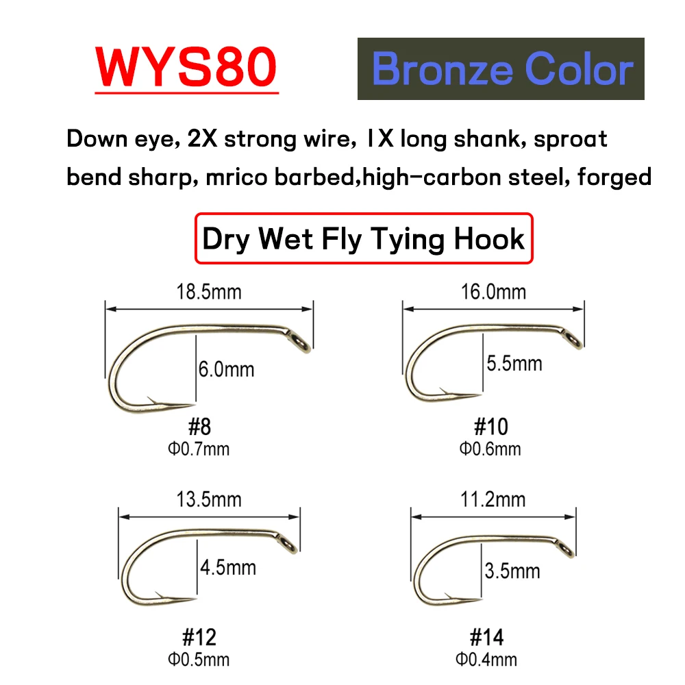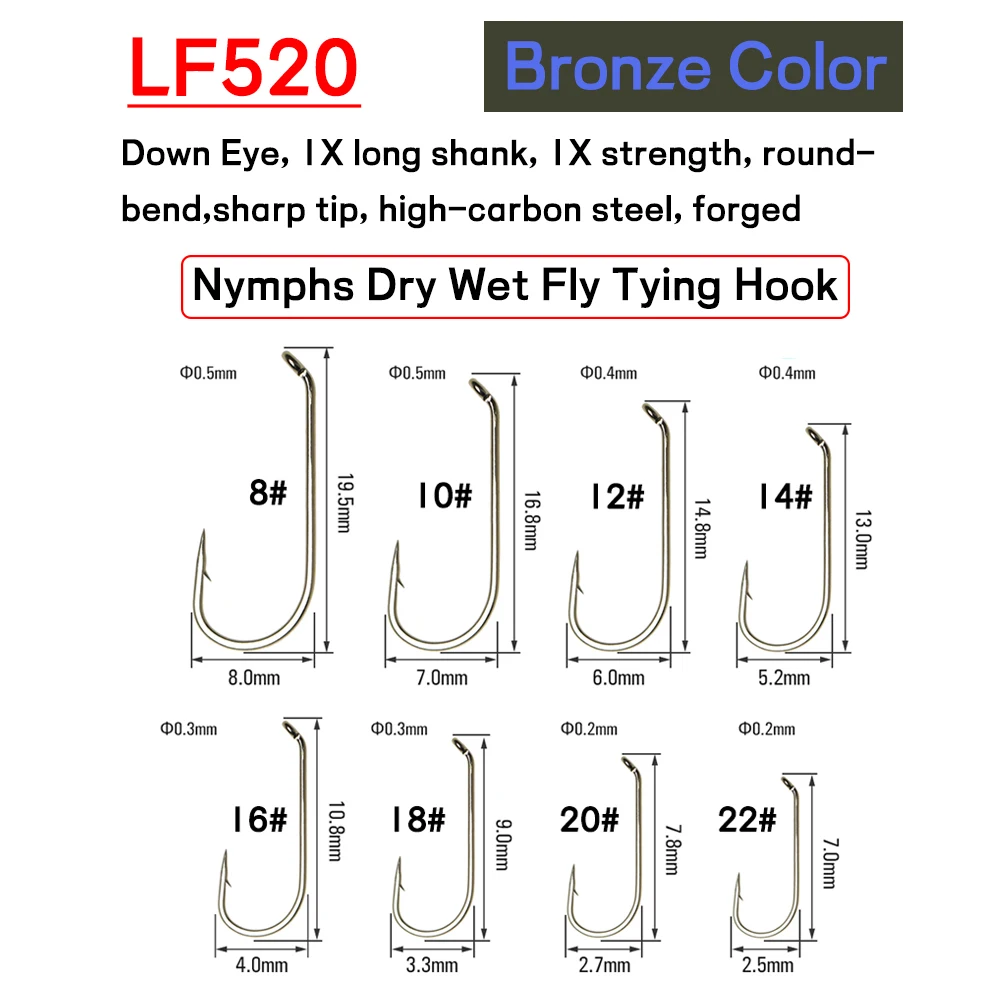 Bimoo 500 Uds. 8 # ~ 22 #, anzuelo con mosca de púas y sin escobillas, anzuelo de pesca con moscas Nymph húmedo seco de acero con alto contenido de carbono