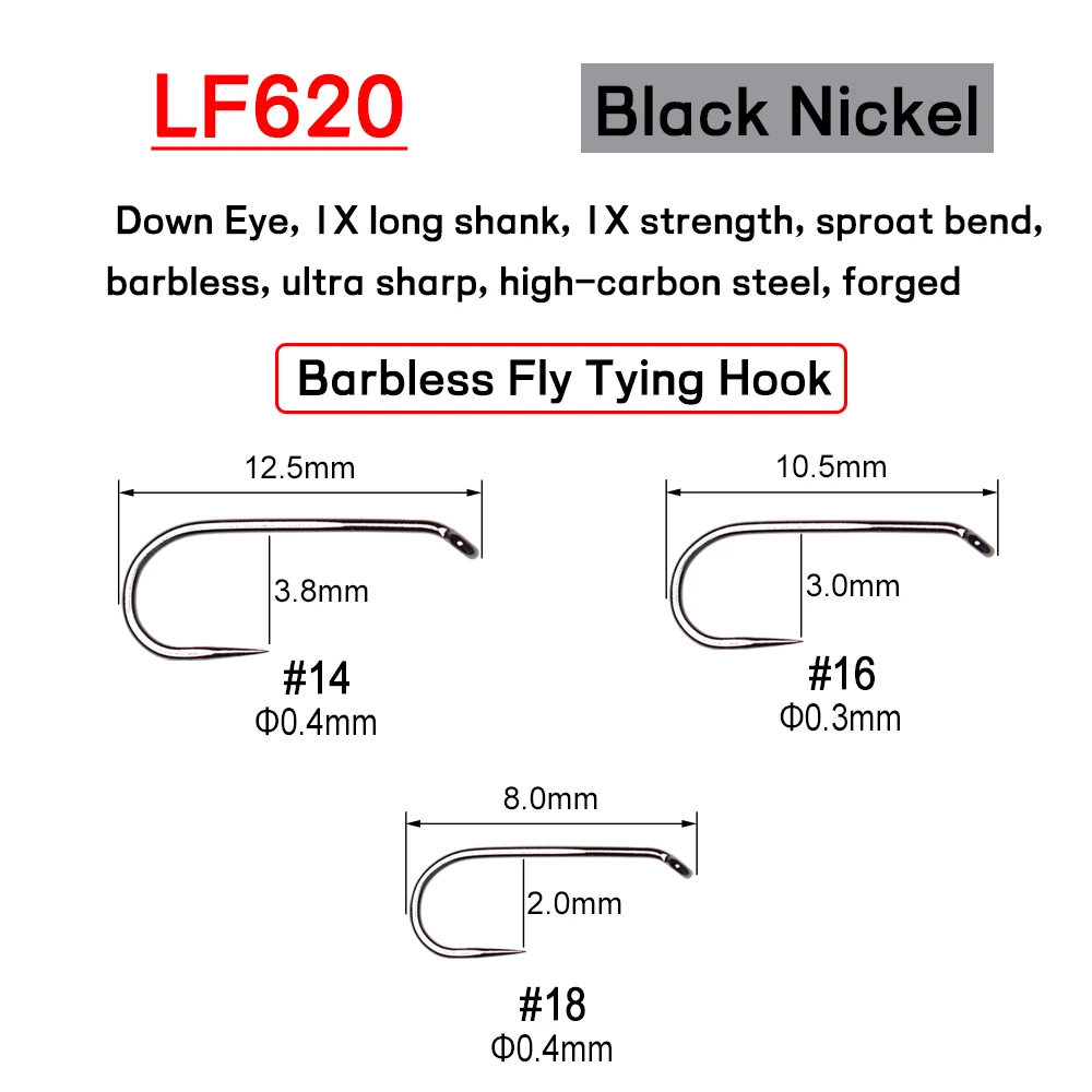 Gancho para atar moscas Barbless con 4 diseños clásicos