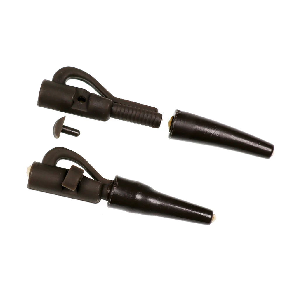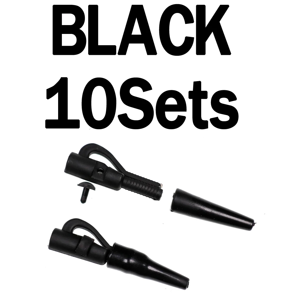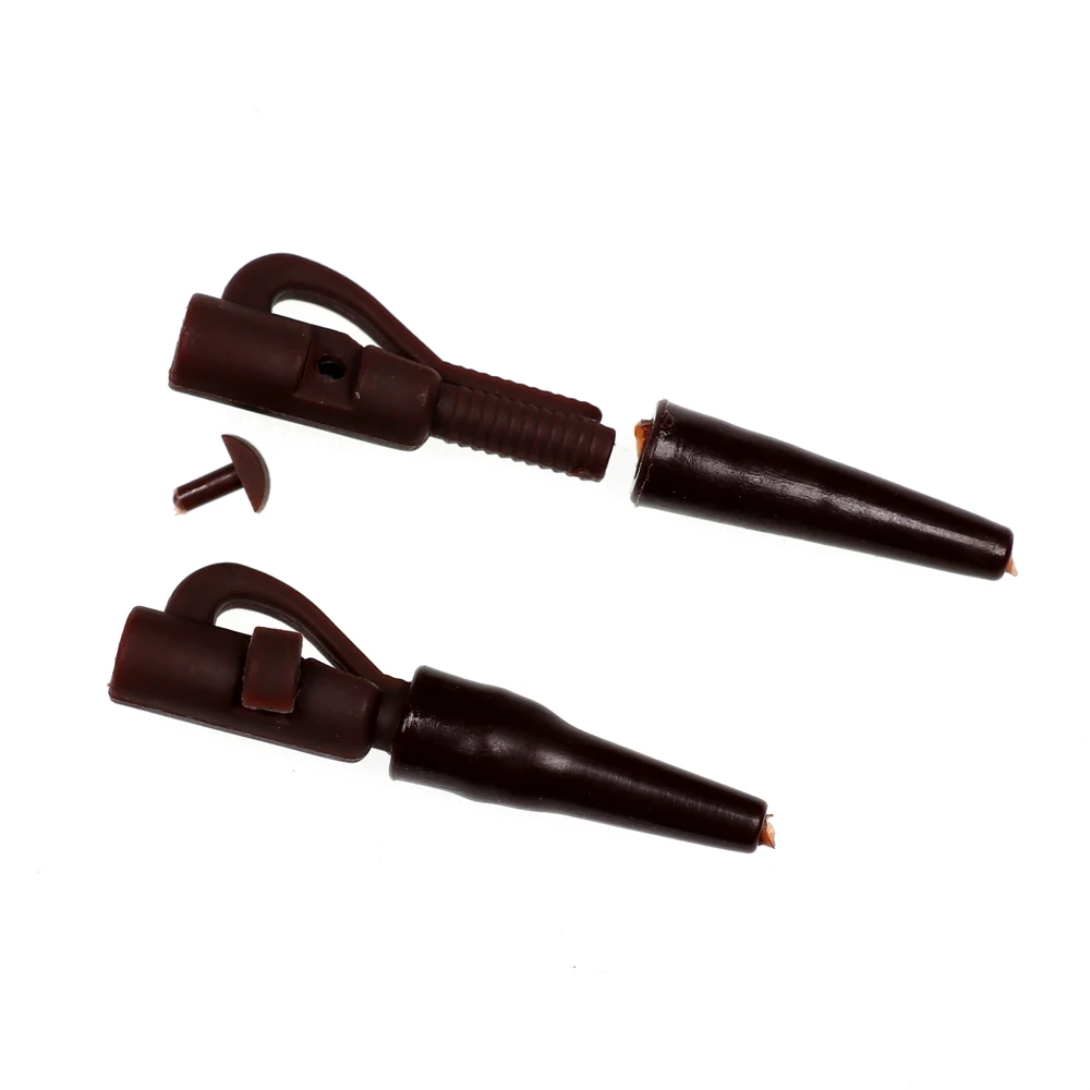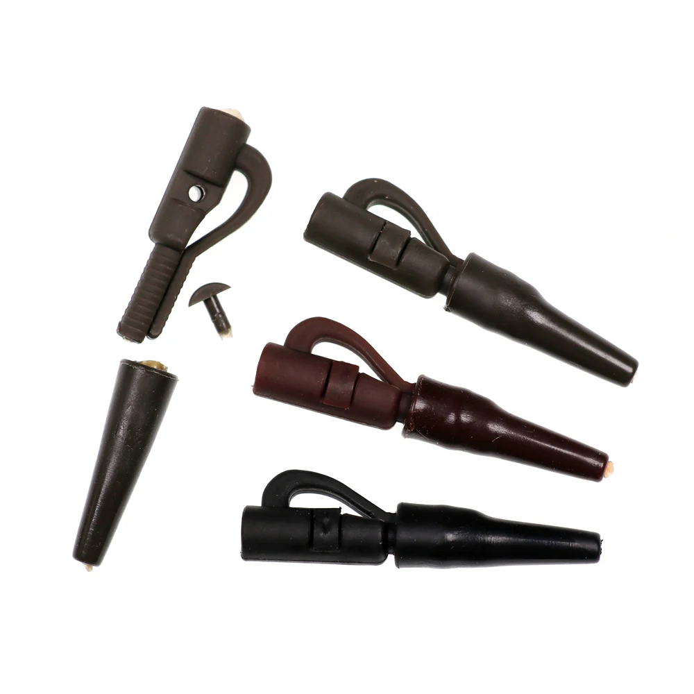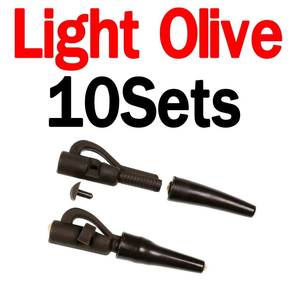 Bimoo 10 juegos de clip líder de seguridad y goma trasera para aparejos de pesca de carpa Sistema de clip de plomo seguro para uso con líder giratorio Negro Marrón Verde Oliva clara