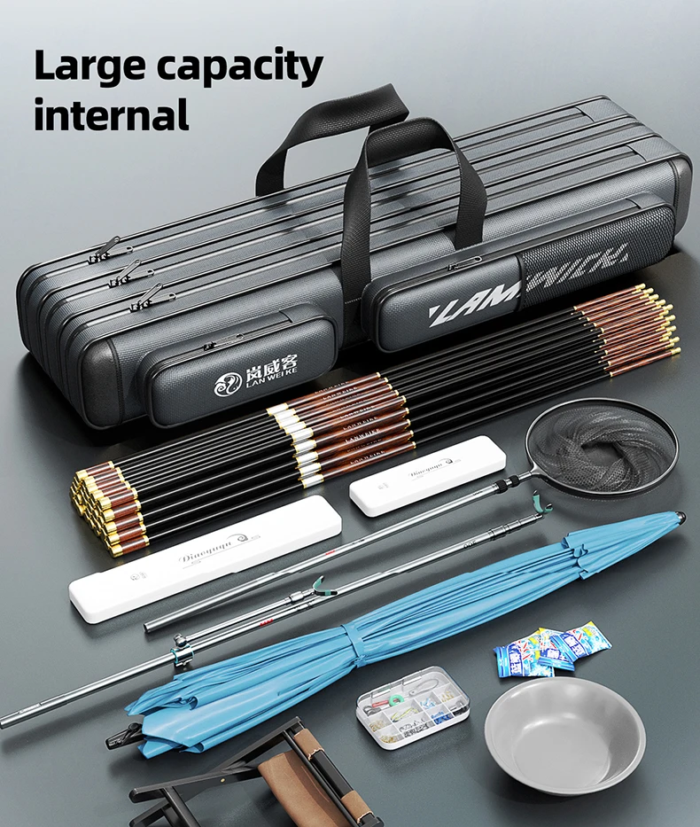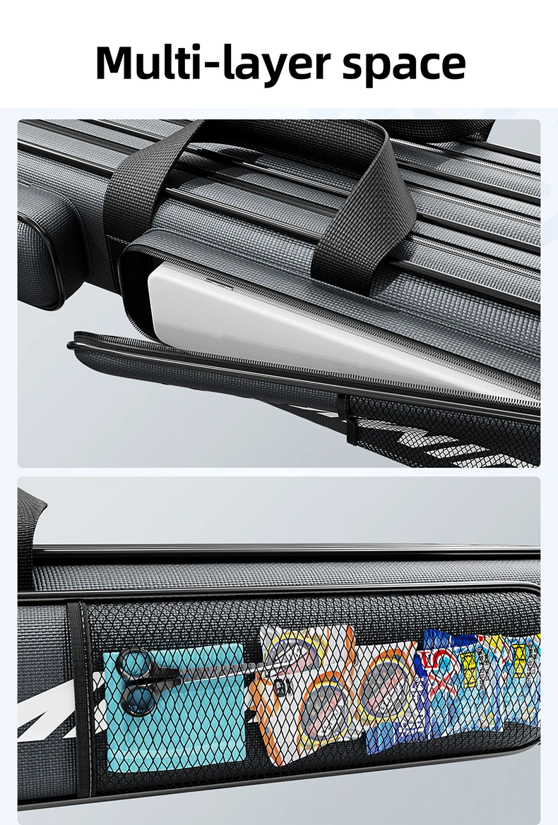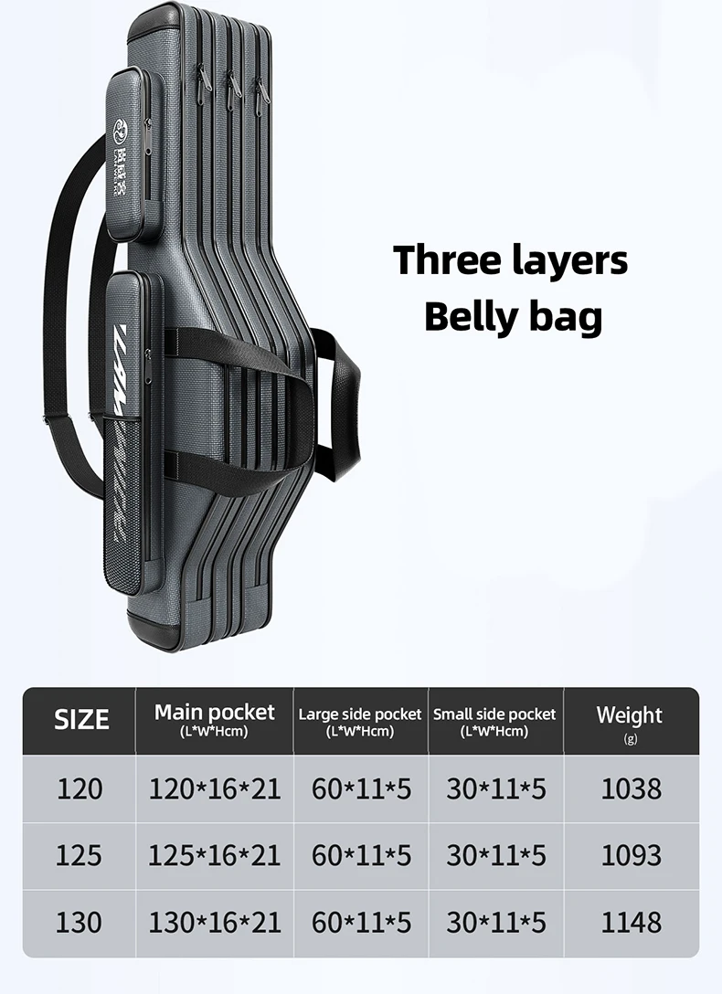 1.Gran capacidad y diseño multicapa, esta bolsa para caña de pescar ofrece un amplio espacio de almacenamiento para todo su equipo.