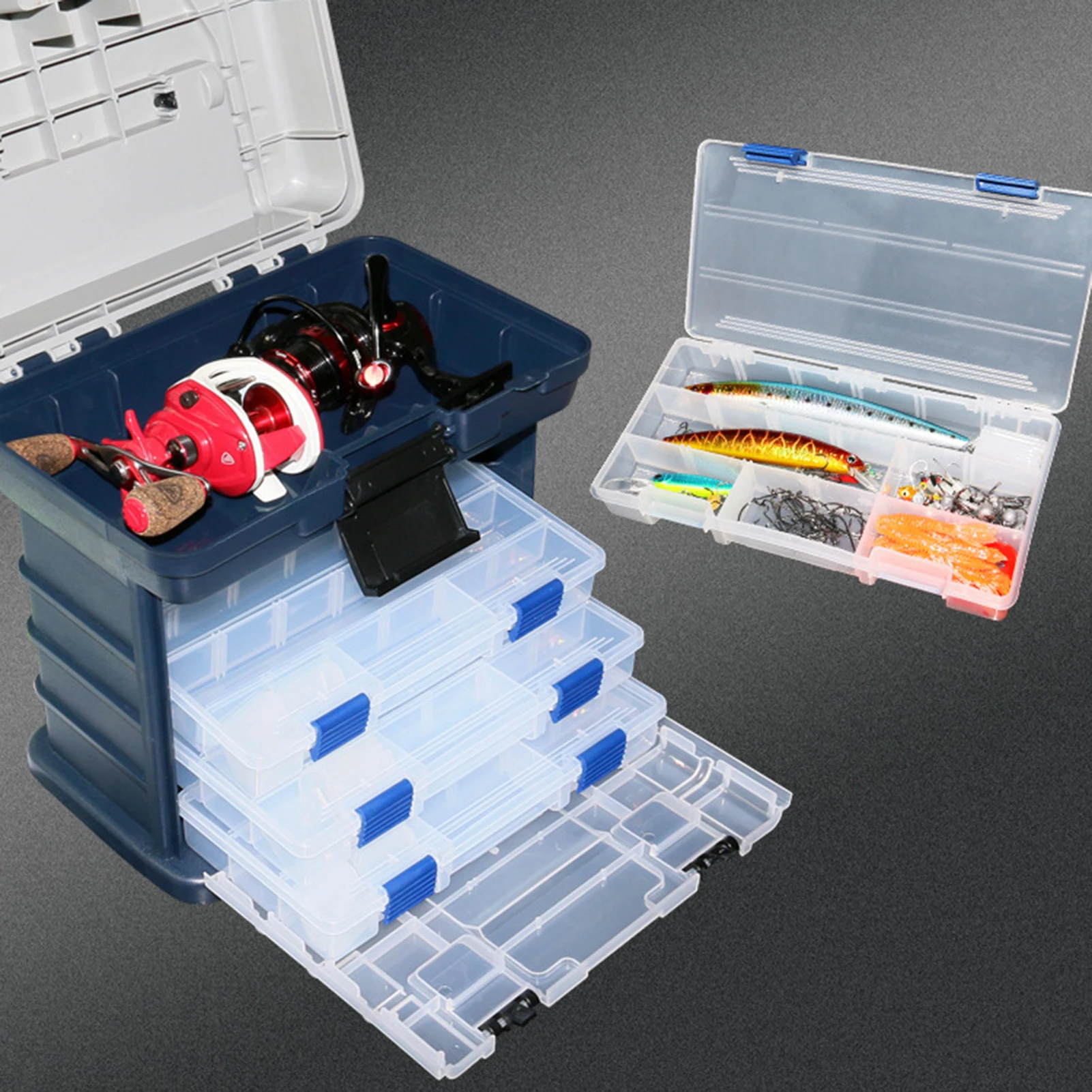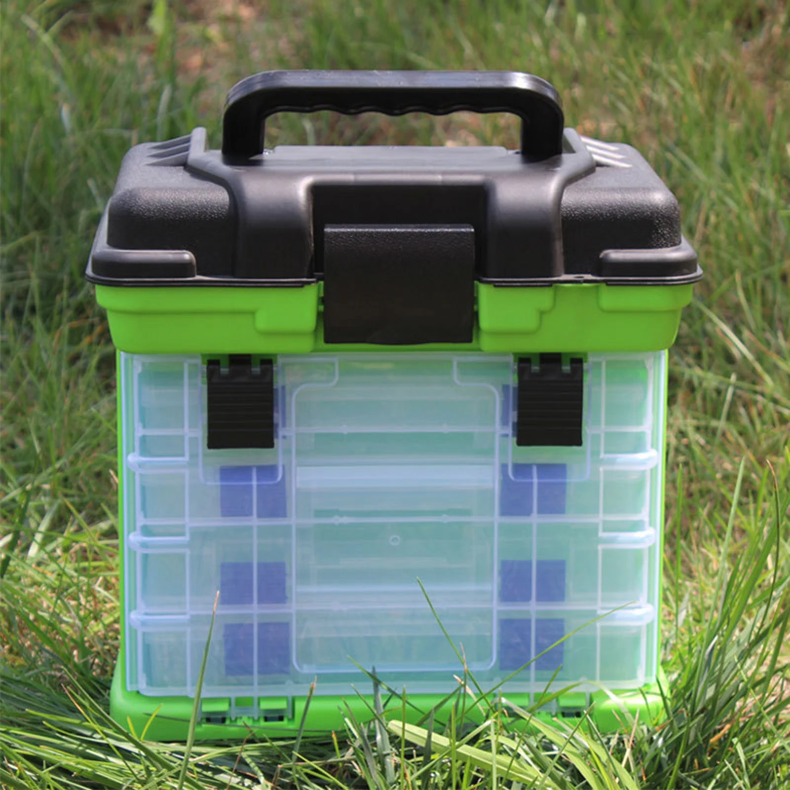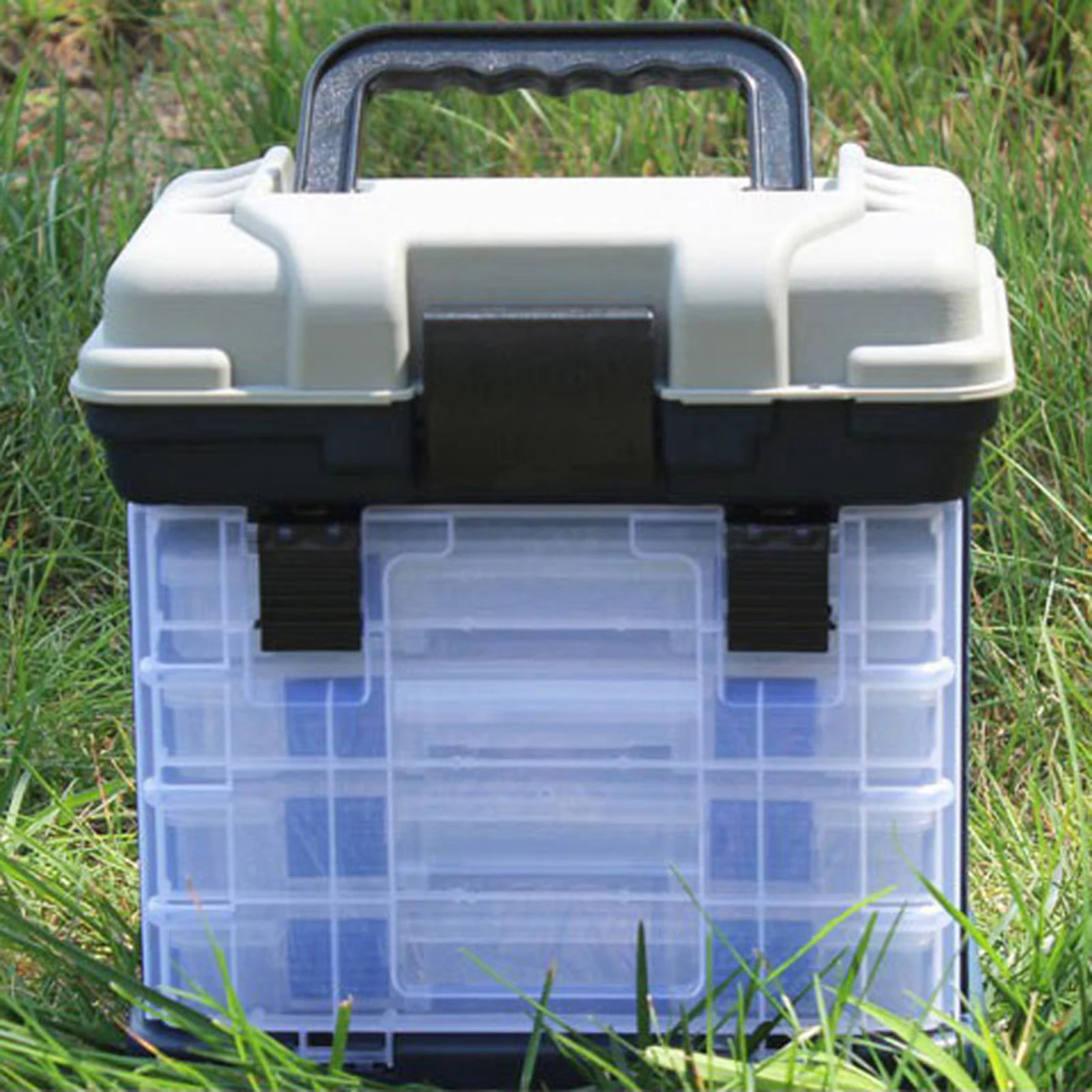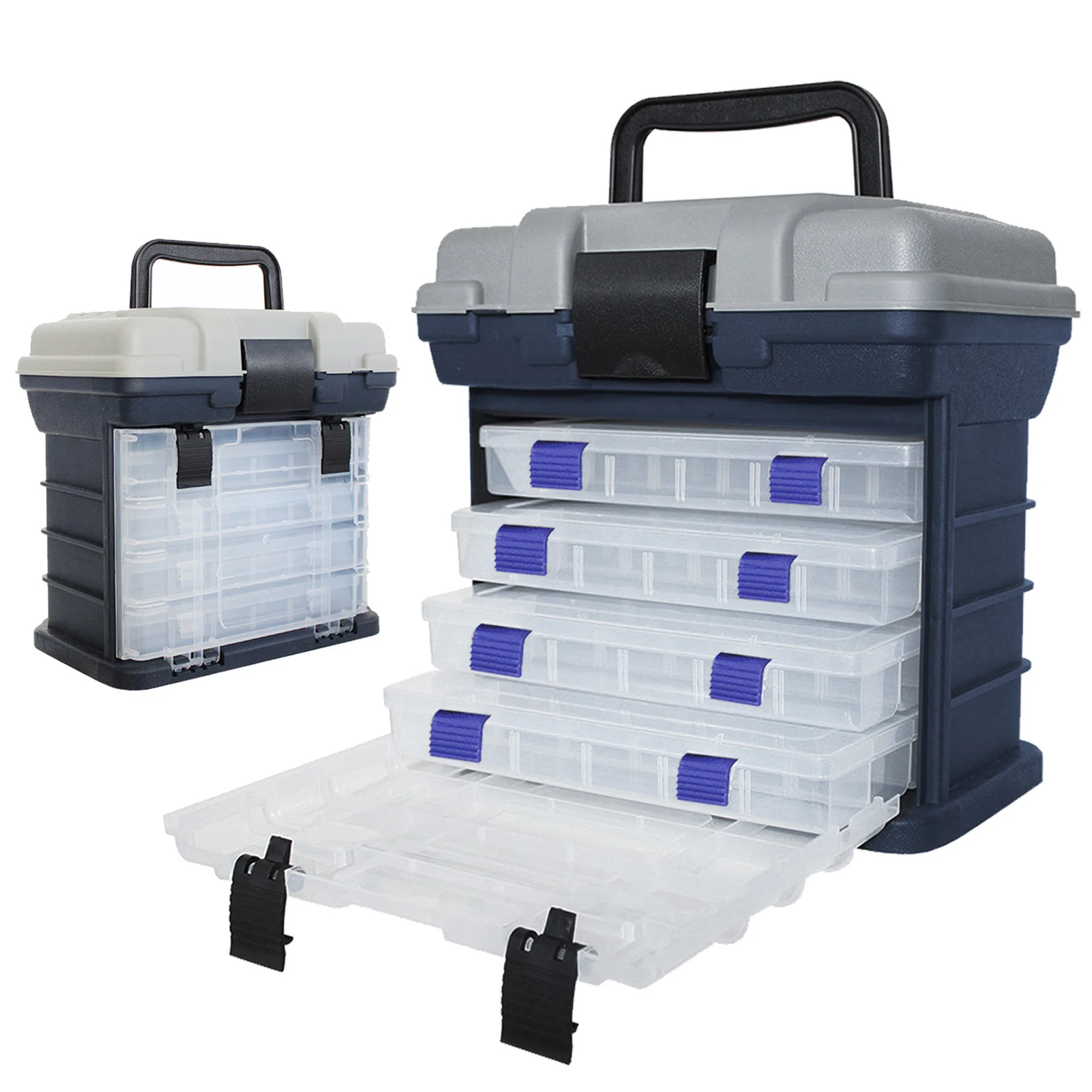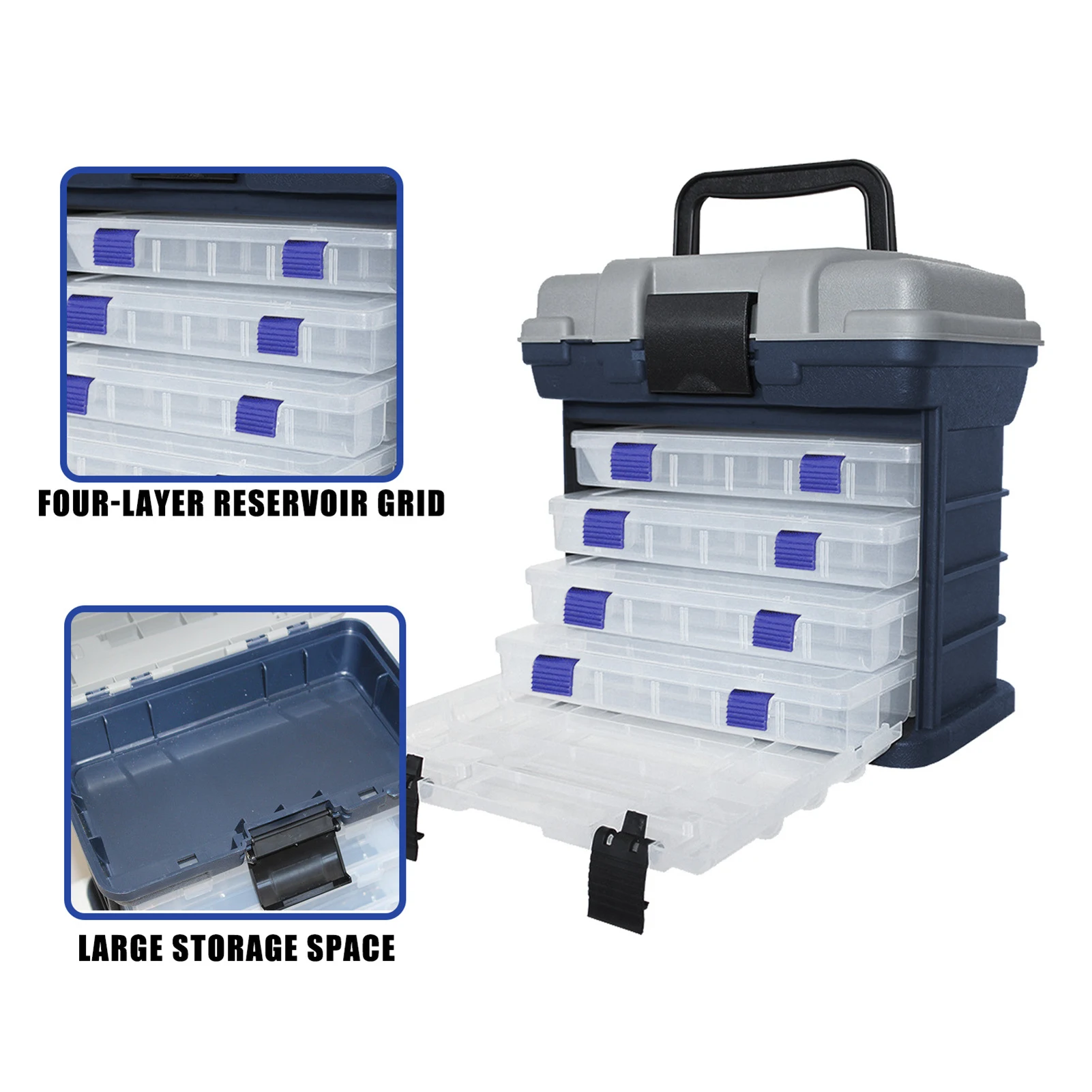 Caja portátil para aparejos de pesca de 4 capas: Diseñado pensando en la portabilidad, este estuche liviano pero resistente incluye un asa cómoda y un diseño compacto, lo que facilita llevar todo el equipo esencial para aventuras de pesca prolongadas.