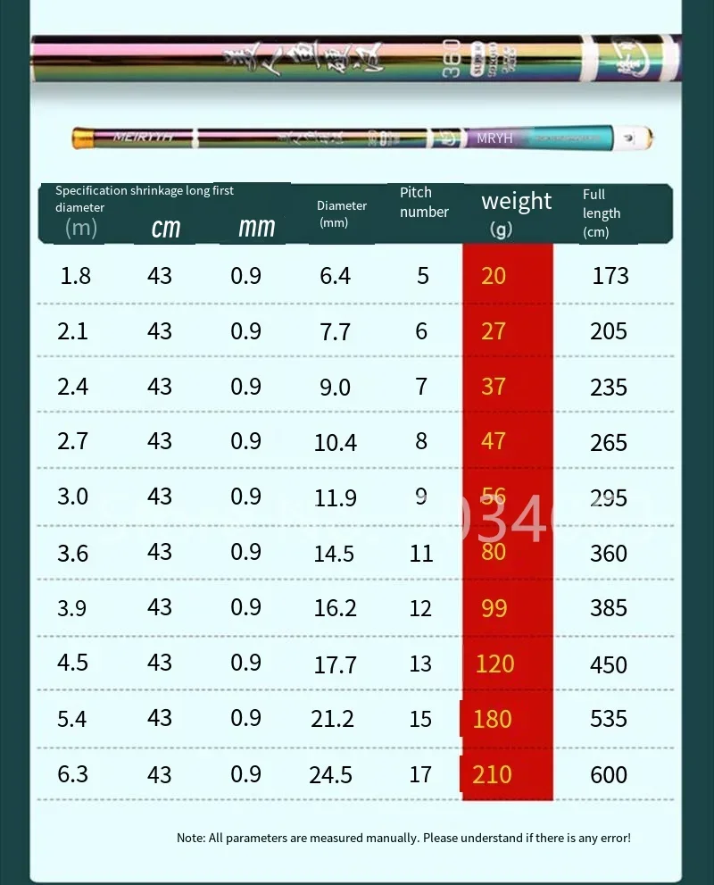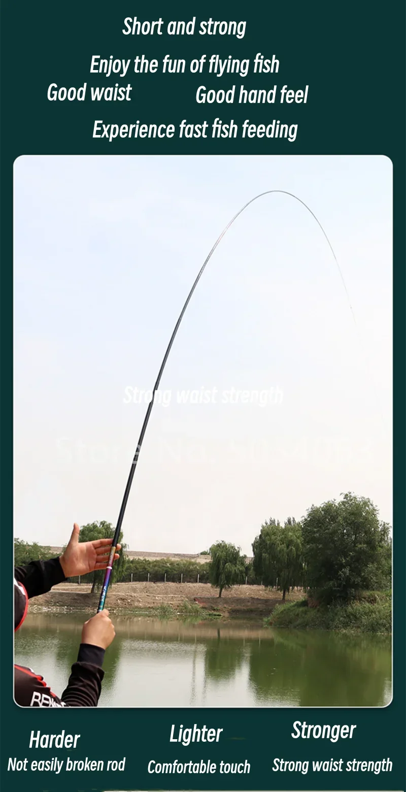 • Dureza: DURA: La dureza de la caña garantiza que pueda soportar la presión de peces pesados sin romperse.