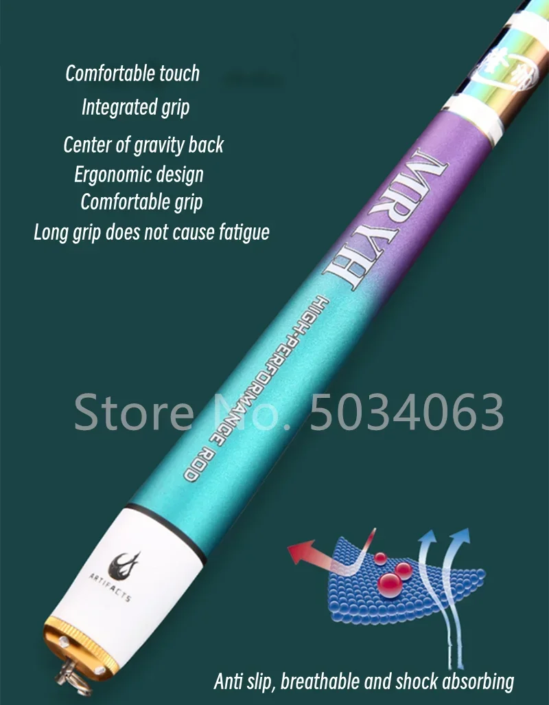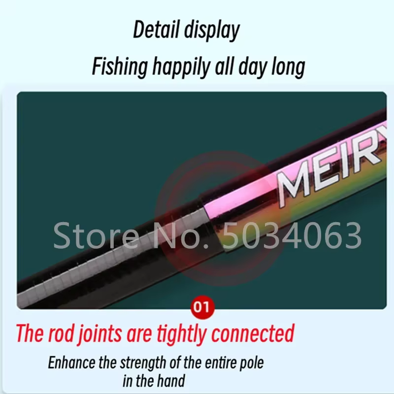• Material de carbono: Fabricada con material de carbono de alta calidad, esta caña de pescar es liviana y duradera, lo que la hace perfecta para viajes de pesca largos.