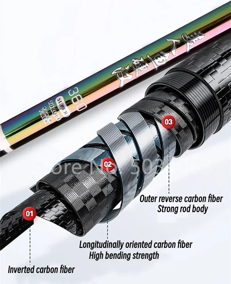 Caña de pescar de carbono fundido giratoria colorida, 5-17 secciones, caña de pescar portátil de 1,8 M-6,3 M, equipo de pesca giratorio