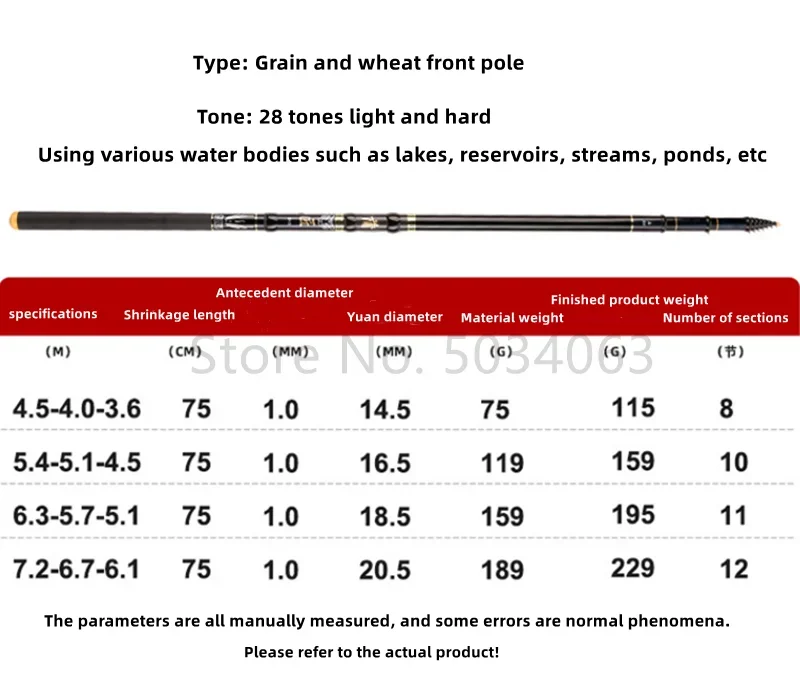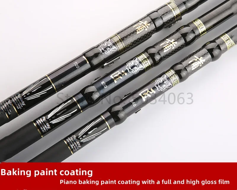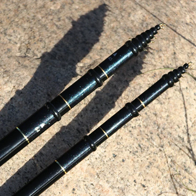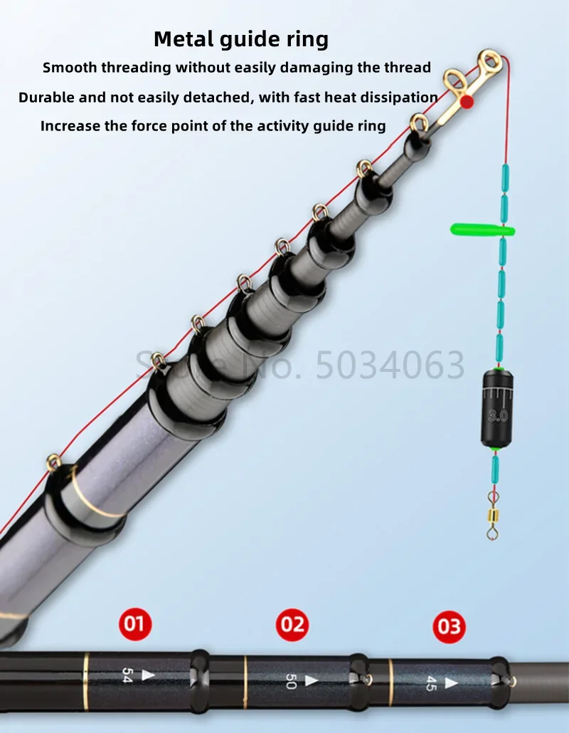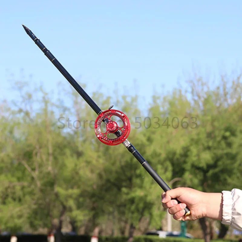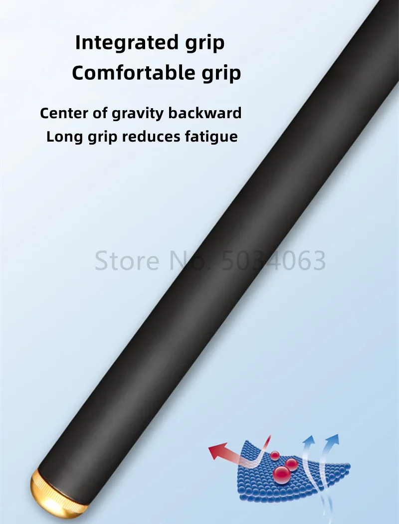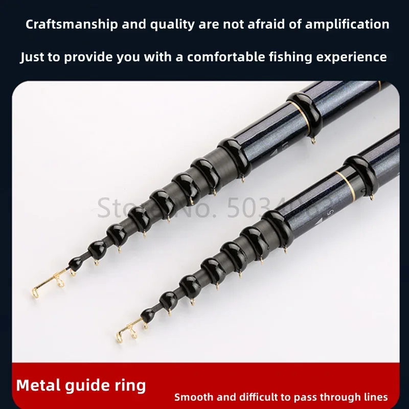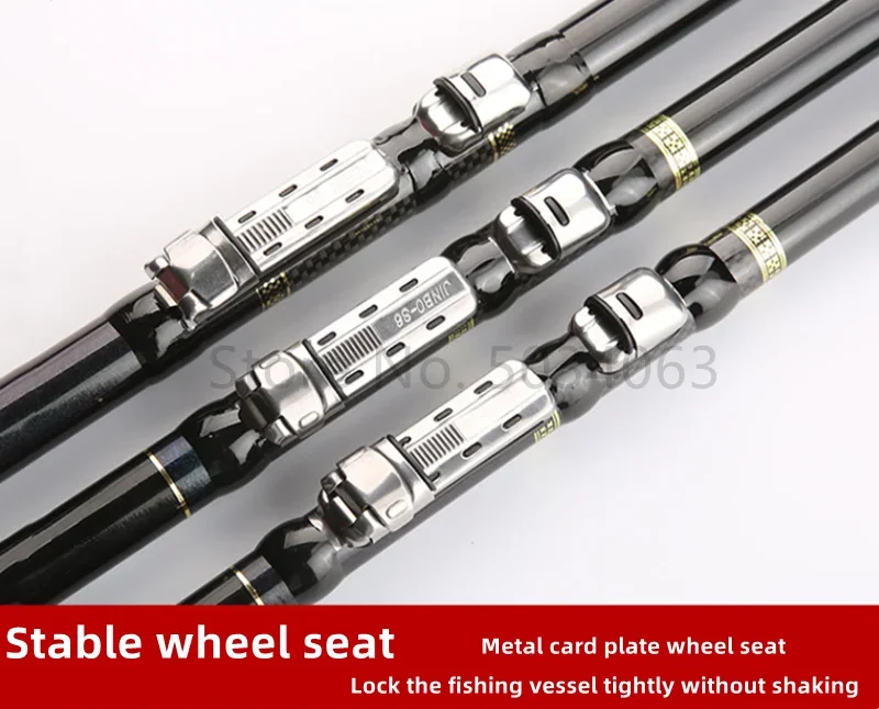 1. Esta caña de pescar está hecha de fibra de carbono, resistente y duradera.