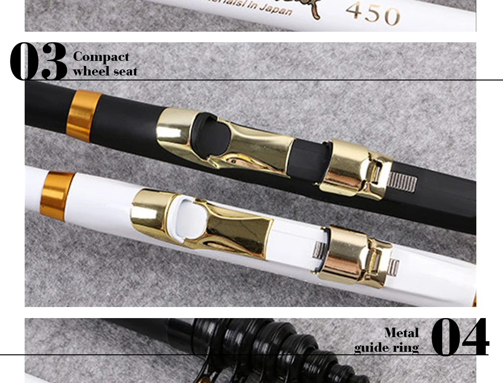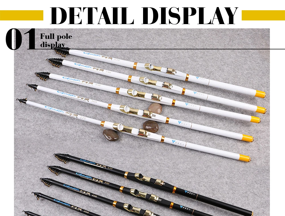Duro 2.7/3.6/4.5/5.4/6.3 metros caña de mano de roca cañas de pescar giratorias telescópicas de fibra de carbono aparejos de pesca negro/blanco