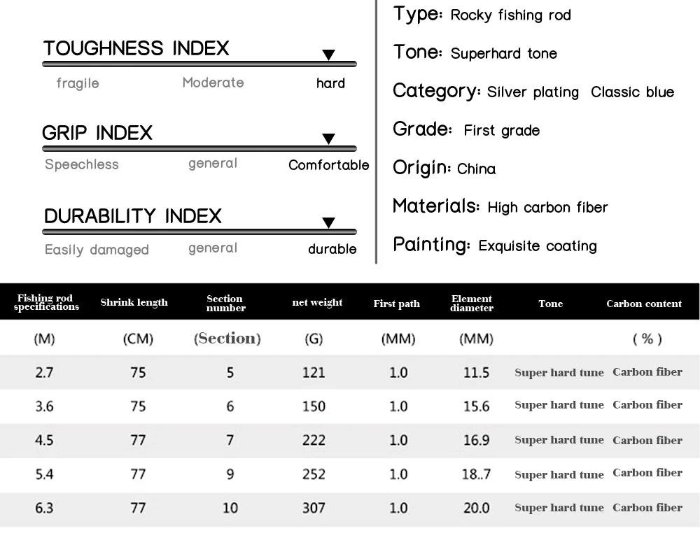 Nota: Los datos del producto se miden manualmente, hay un pequeño error. Desde el número de secciones de la varilla, la longitud de la varilla se extiende completamente es menor que el tamaño. Por favor entiéndalo, ¡gracias!