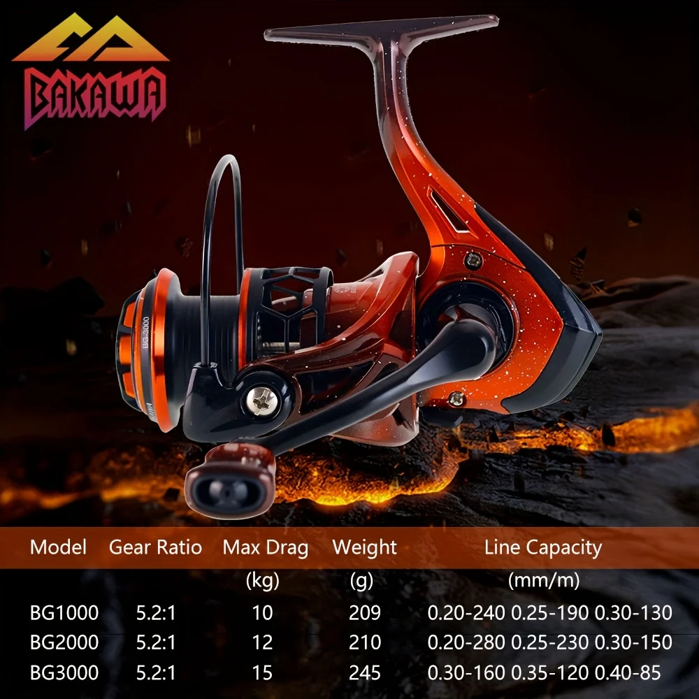 Carrete giratorio BAKAWA, carretes de pesca, accesorios de pesca, serie 1000 2000 3000, equipo de pesca, línea de Metal 5,2:1, productos de pesca