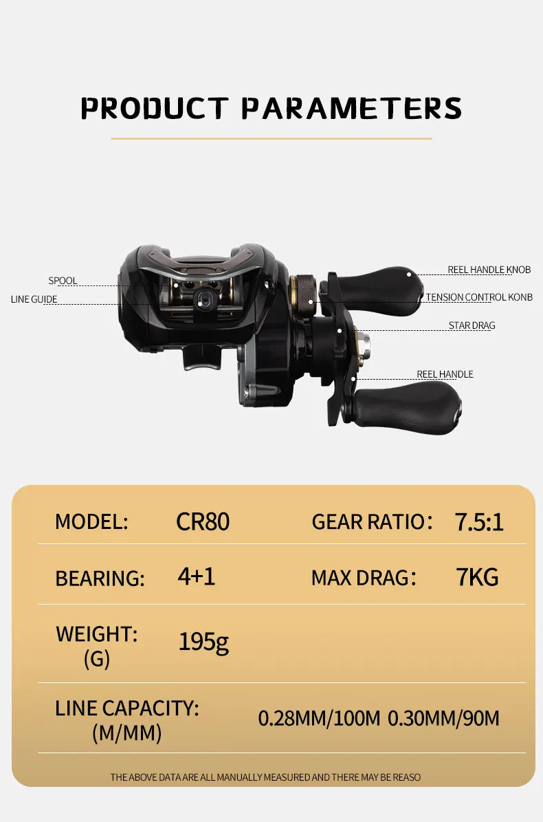 Carrete de pesca DEUKIO 195g ultraligero Baitcasting 7,5:1 relación de engranaje 4 + 1BB 7KG potencia de arrastre Baitcaster agua salada agua dulce