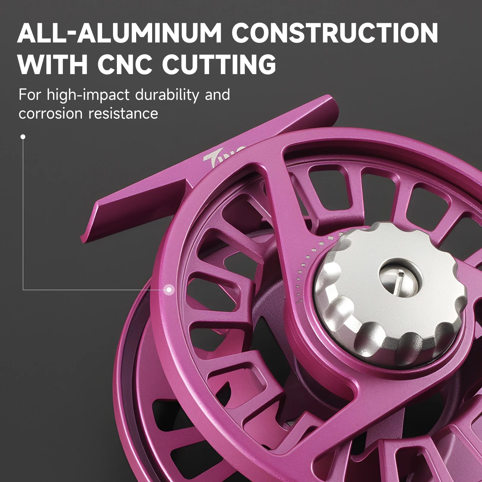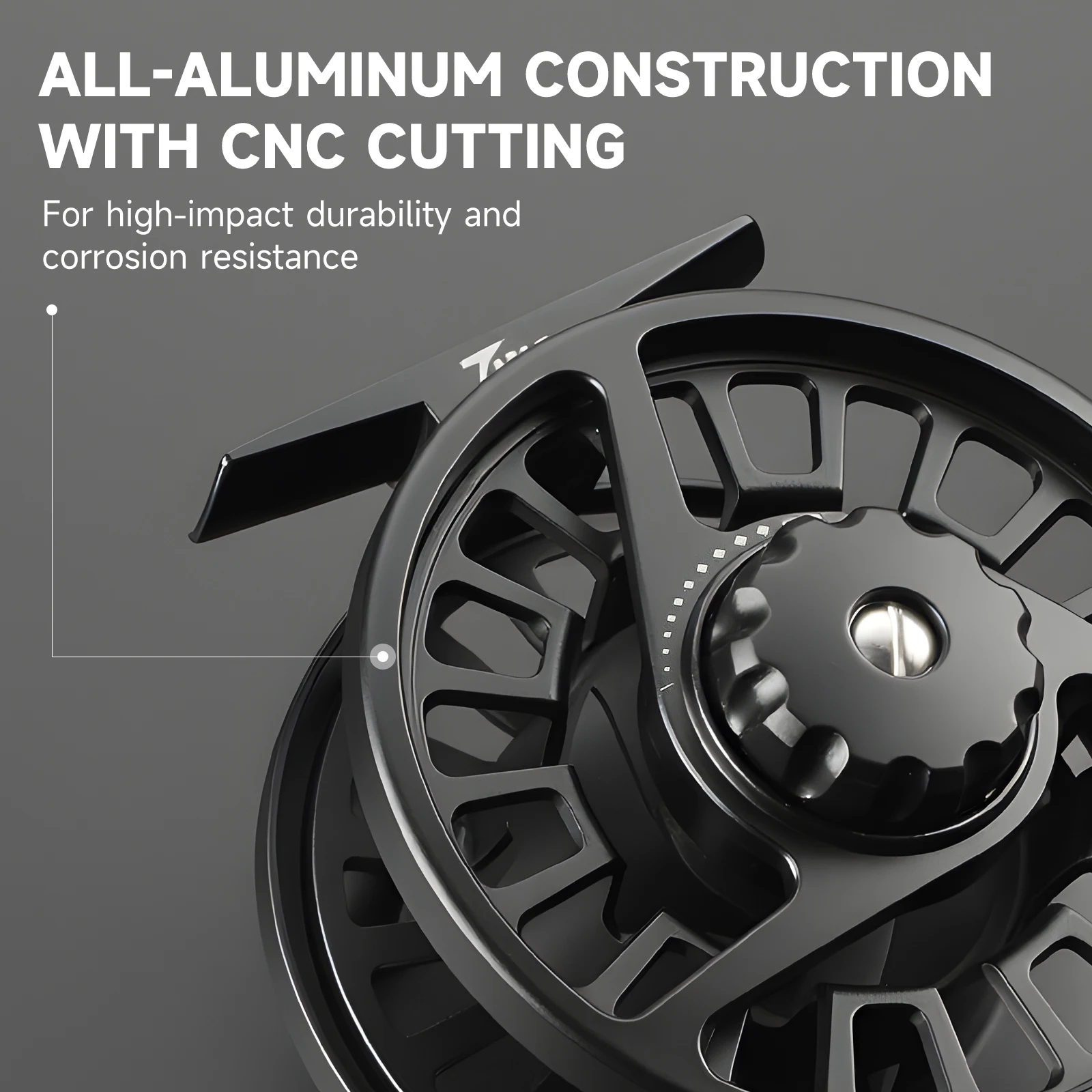 •Construcción totalmente de aluminio resistente y duradera con corte CNC para refuerzo, diseño de eje grande para una recuperación rápida de la línea.