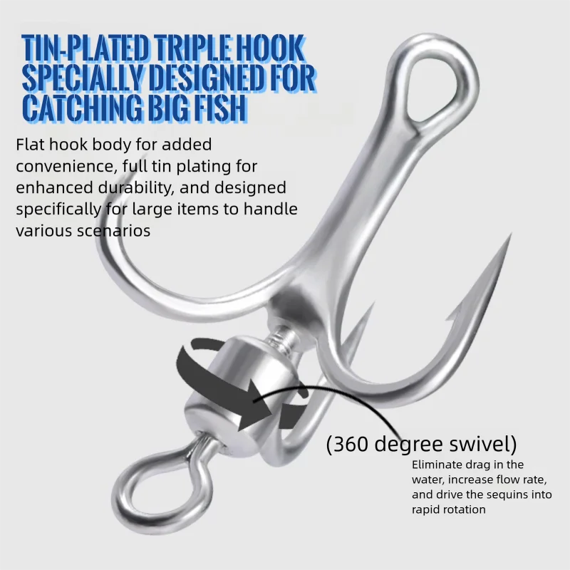 4.Anzuelos triples afilados: equipados con fuertes anzuelos triples diseñados para enganchar y retener peces de forma segura una vez que muerden.